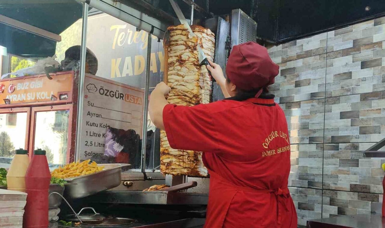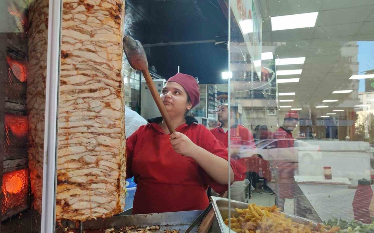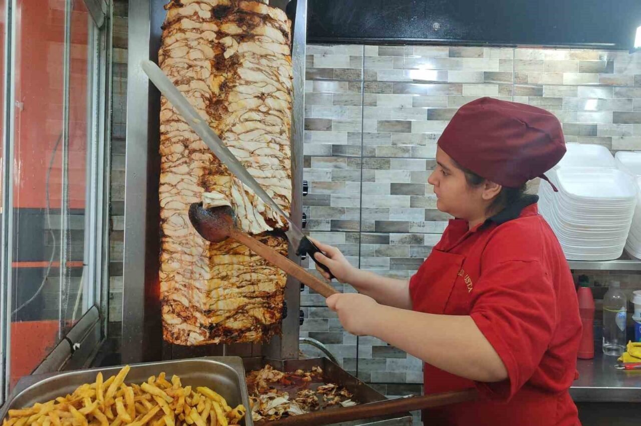 Kahramanmaraş’ta 14 yaşındaki Elif Naz Savran, babasının işlettiği iş yerinde dönerci ustası oldu.