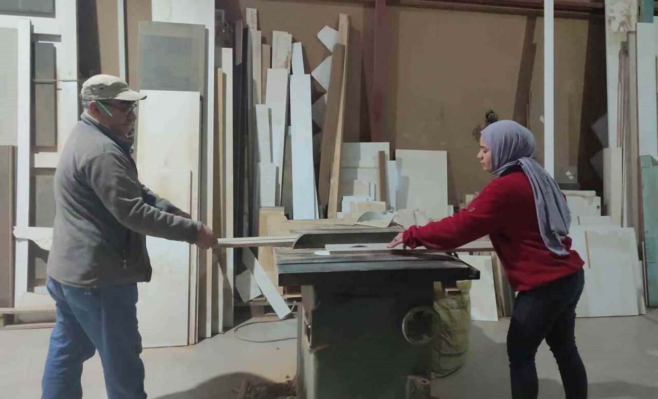 Kahramanmaraş’ın Dulkadiroğlu ilçesinde yaşayan 19 yaşında Hatice Kübra Topaktaş, 5 yıl önce mobilya ustası babası Fahri’nin yanında okulundan geri kalan zamanlarda atölyede çalışmaya başladı. Burada işin inceliklerini ve makineleri kullanmayı öğrenen Topaktaş, babasıyla birlikte çeşitli mobilya imalatı yapıyor.
