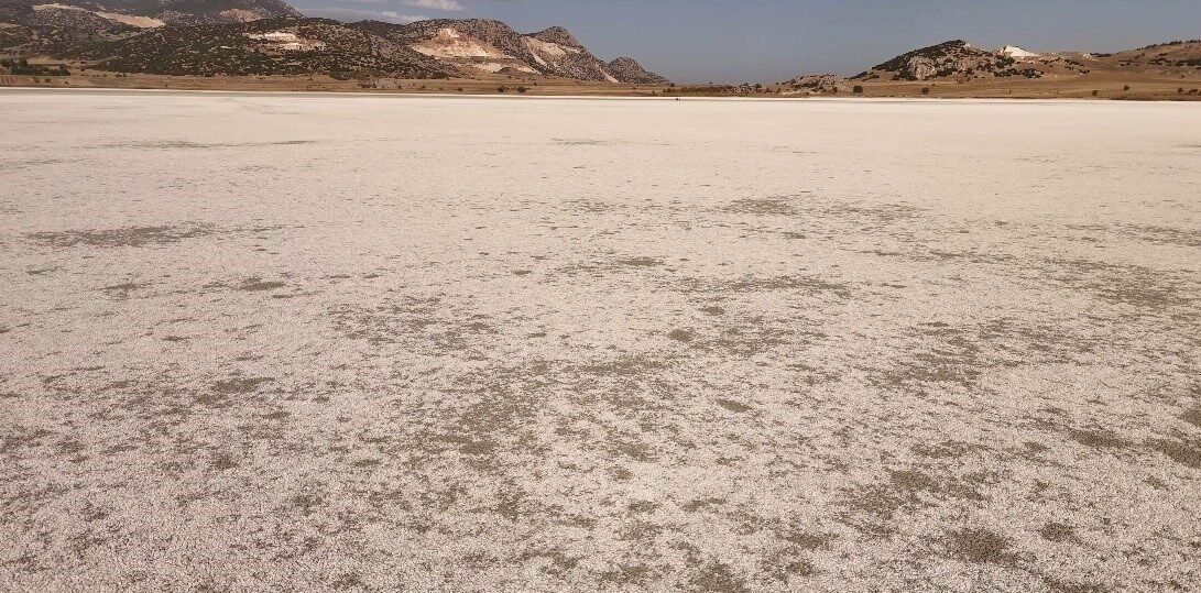 Burdur’un Yeşilova ilçesinde bulunan Yarışlı Gölü, 2 sene öncesine binlerce flamingoyu ağırlarken şimdilerde göl tamamen kurudu, gölün tabanında sadece göle gelen misafirlerin ayak izleri kaldı.