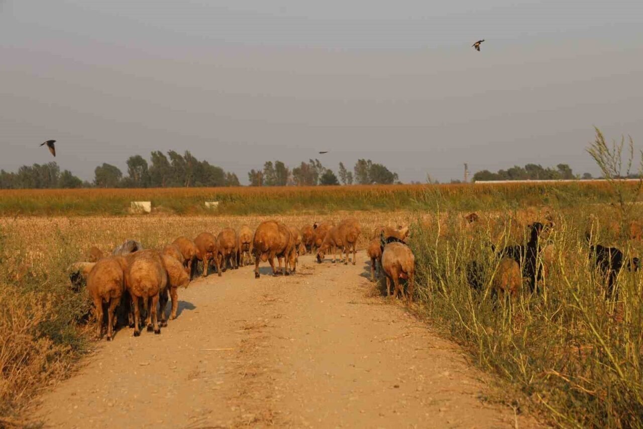 Nemle birlikte hissedilen sıcaklığın 50 derece olduğu Adana’nın Kozan ilçesinde vatandaş koyunla kilometrelerce alanı katederek sürülerini otlatıyor.