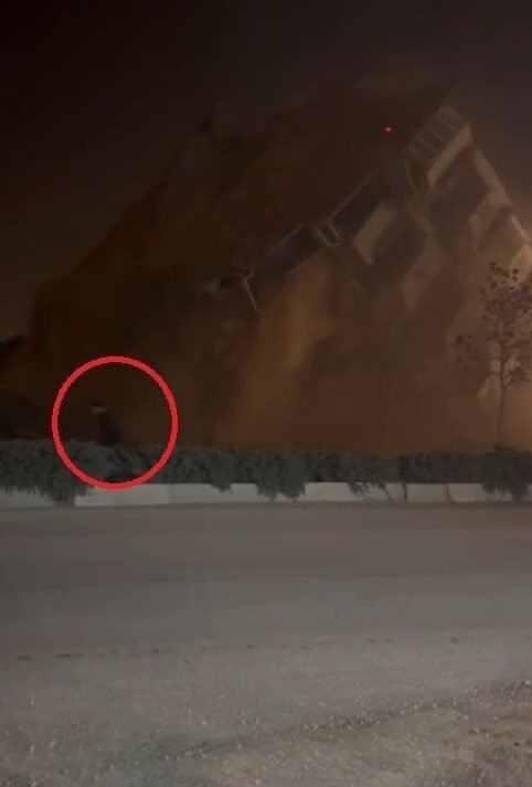 Hatay’ın Defne ilçesinde 6 katlı binanın iş makinesinin darbesiyle kontrollü olarak yıkıldığı esnada panik yaşayan vatandaşın kaçtığı anlar kameraya yansıdı.