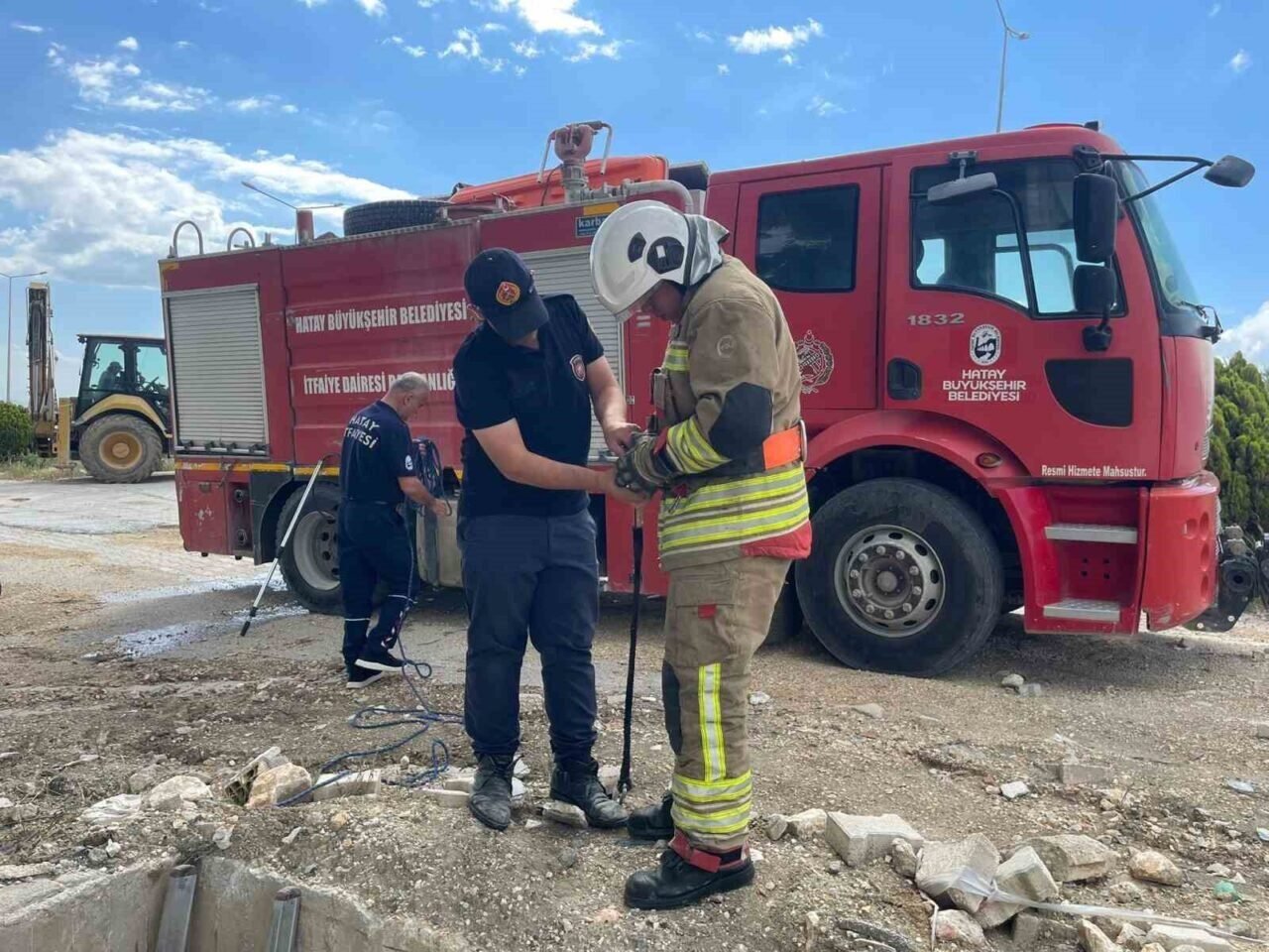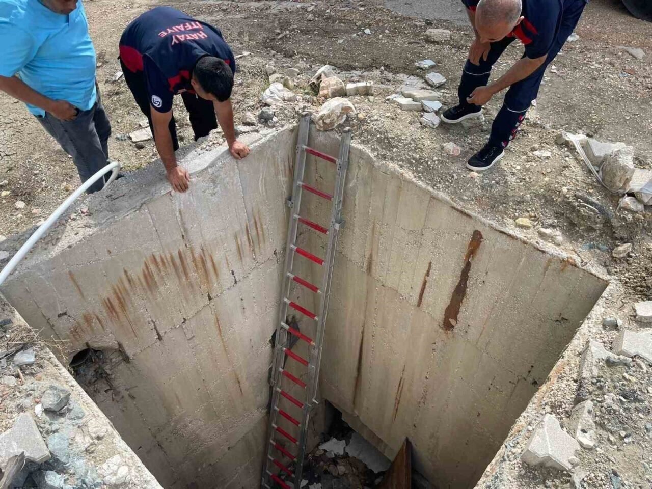 HATAY’IN ANTAKYA İLÇESİNDE 7 METRELİK SU KUYUSUNA DÜŞEN KEDİYİ, İTFAİYE EKİPLERİ KURTARDI.
