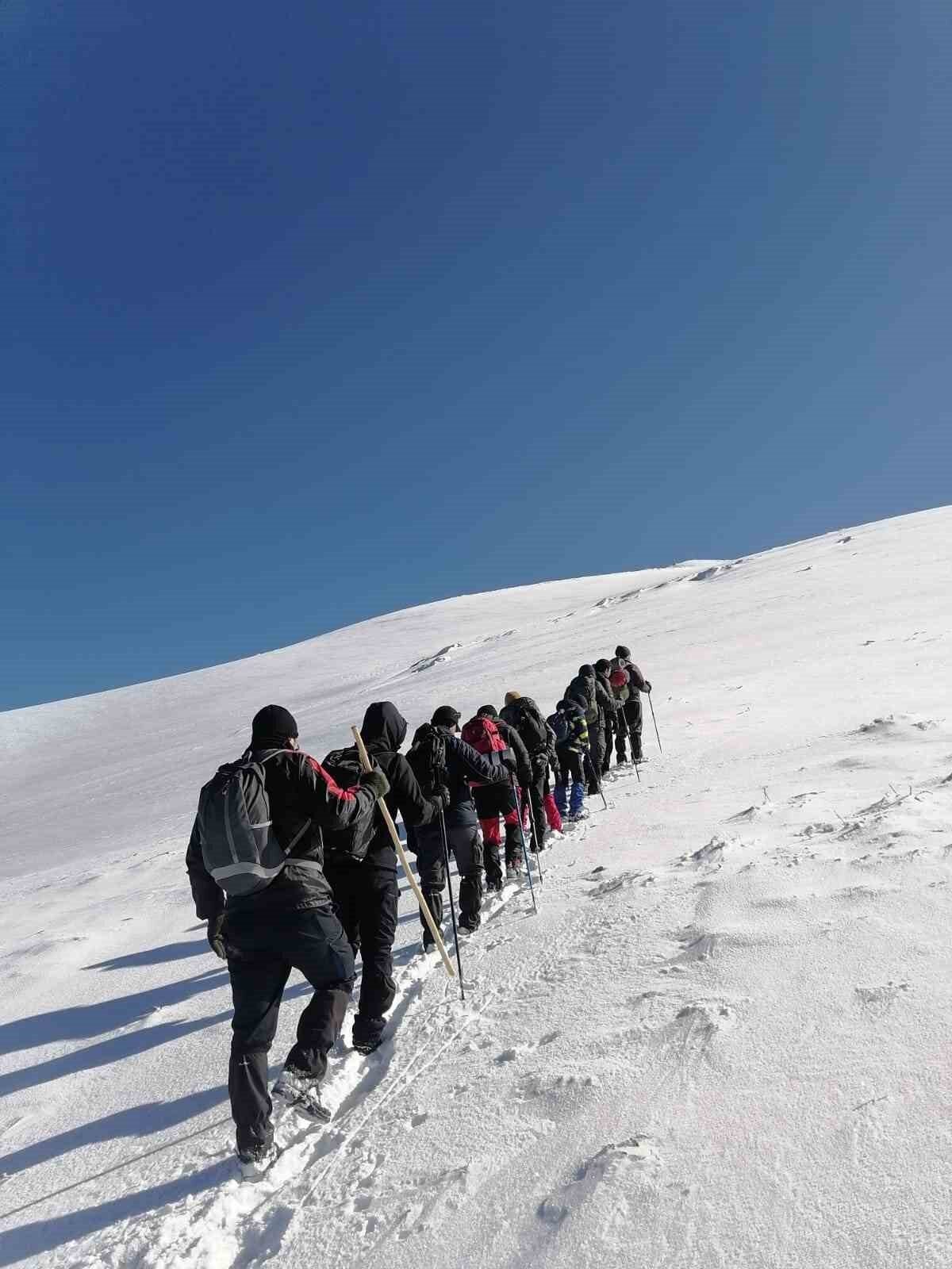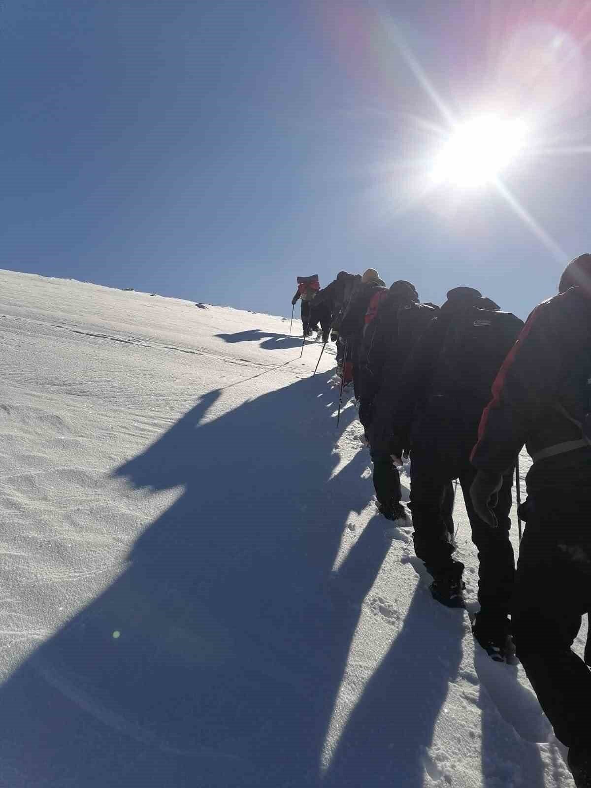 “Zirveye çıktıktan sonra yırtılmış olan Türk bayrağını değiştirdik ve ardından İstiklal Marşı’yla göndere çekerek tüm şehitlerimize Fatiha okuyarak tırmanışımızı bitirdik”