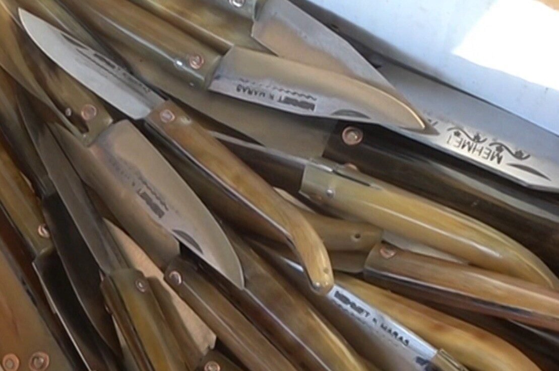75 yaşındaki usta, baba mesleğini sürdürüyor, el işçiliği koç boynuzu bıçak üretiyor