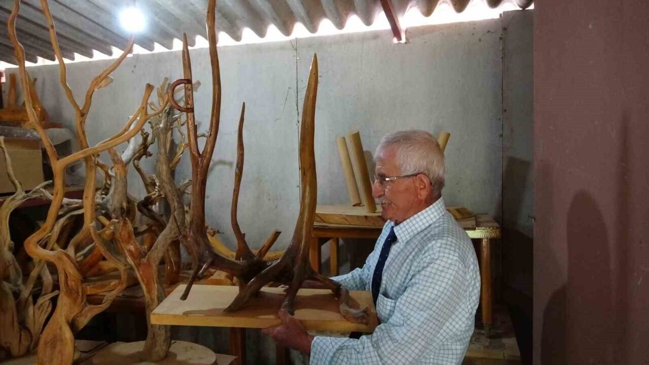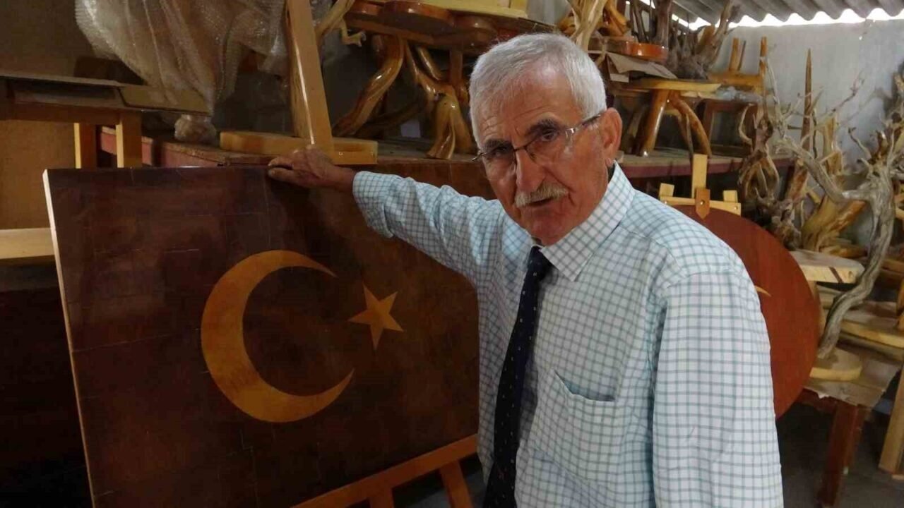 Isparta’nın Sütçüler ilçesi Çandır Köyü’nde yaşayan emekli ahşap ustası Mustafa Şahinkaya, doğadan topladığı ağaç figürlerini işleyerek sanata dönüştürüyor. 15 Temmuz şehitleri anısına yaptığı 246 parçalık Türk bayrağı eseri ise sergilerde büyük beğeni topluyor.
