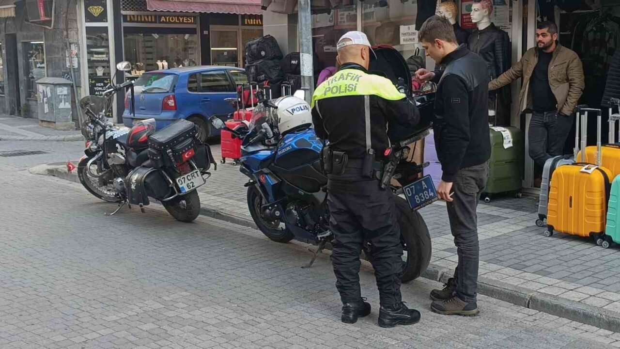 Antalya’nın Manavgat ilçesi İbrahim Sözen Caddesi üzerinde uygulama yapan Manavgat Emniyet Müdürlüğü Trafik Denetleme Büro Amirliği’ne bağlı ekipler, karşı şeritte 07 CRT 62 plakalı motosikletin çıkardığı yüksek sesin gürültü kirliliği oluşturması nedeniyle uygulamayı bırakarak motosikleti takibe aldı. Tim yaklaşık 500 metre süren takibin ardından Şelale Caddesi üzerinde motosikleti durdururken, egzozu tamamen boşaltılmış olan motosikletin sürücüsü Ömer E.A.’ya abartılı egzozdan dolayı 9 bin 267 TL para cezası uyguladı. Motosiklet ise trafikten men edilerek yediemin otoparkına çektirildi.
