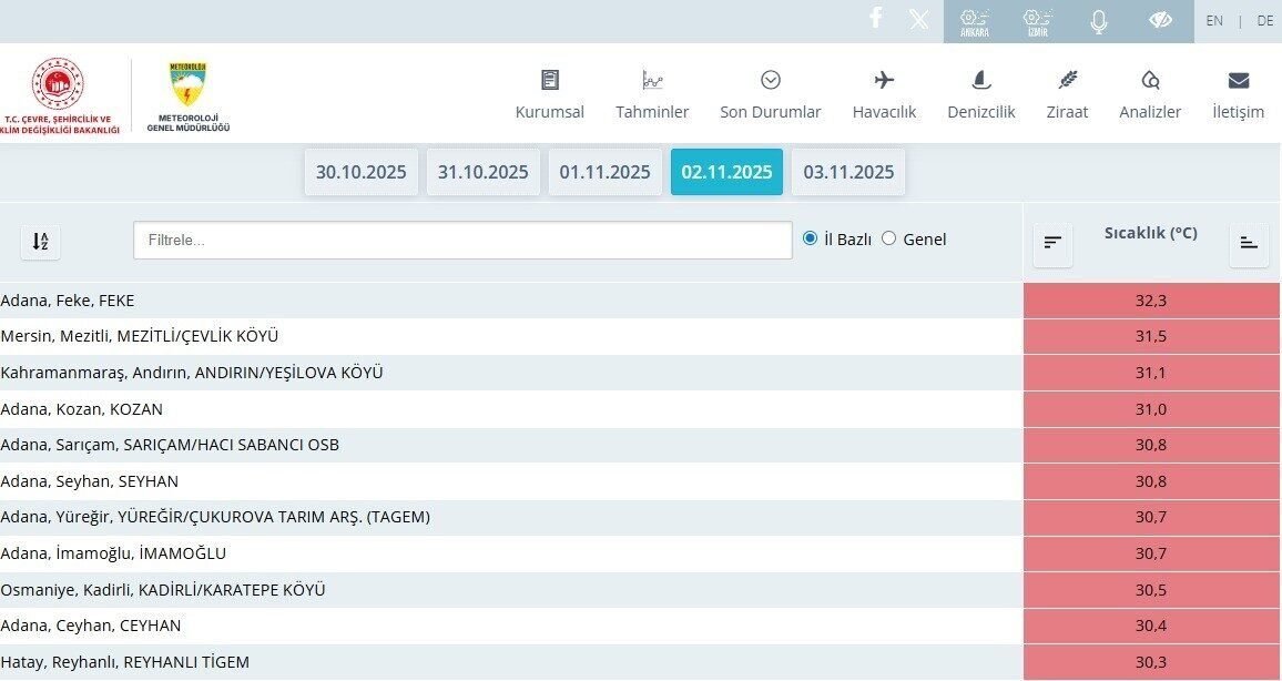 TÜRKİYE’NİN EN SICAK İLLERİNDEN ADANA’DA SON 1 HAFTADA METEOROLOJİ GENEL MÜDÜRLÜĞÜ VERİLERİNE GÖRE 5 GÜN SICAKLIK REKORU KIRILDI VE ADANA, 31 DERECENİN ÜZERİNE ÇIKARAK TÜRKİYE’NİN EN SICAK İLİ OLDU.