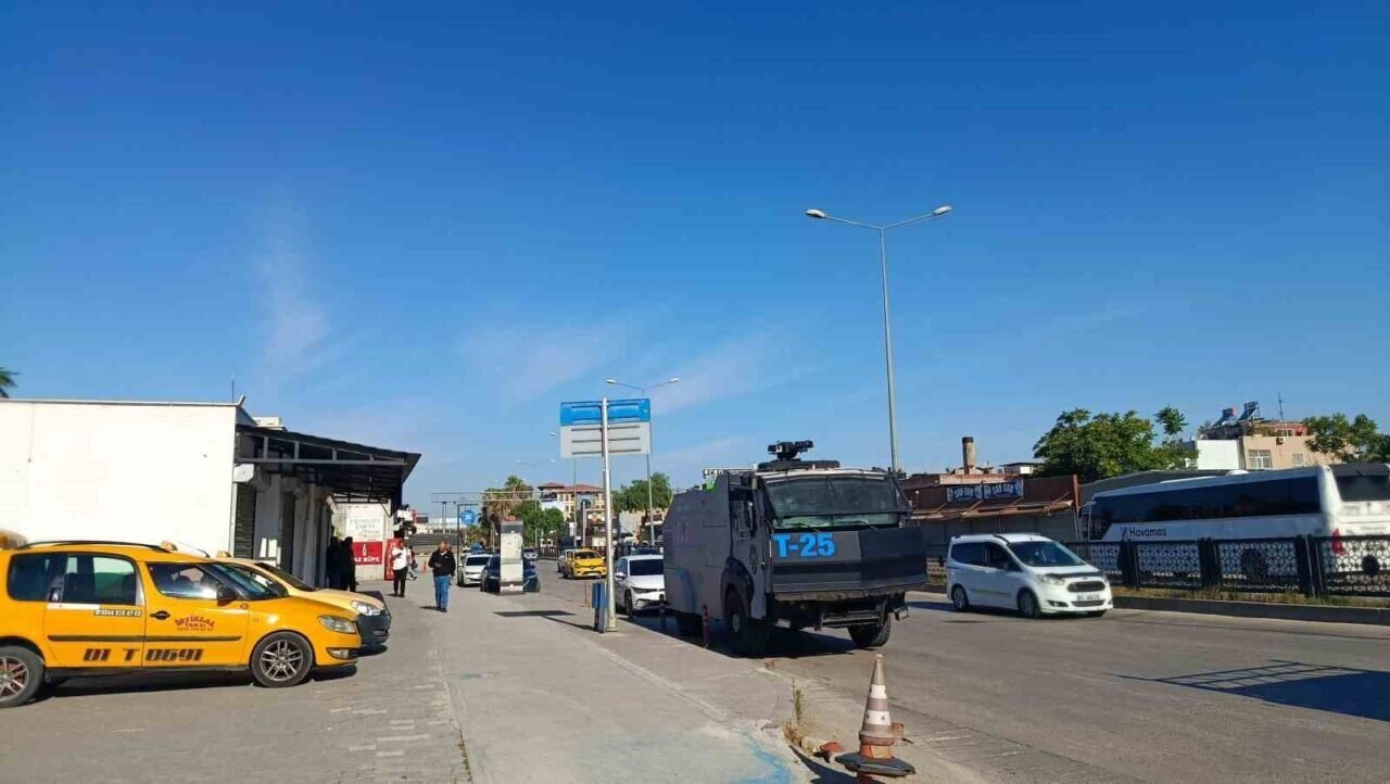 Merkez Seyhan ilçesi Turhan Cemal Beriker Bulvarı’nda bulunan Seyhan Belediyesinin çevresinde çevik kuvvet ekiplerinin yanı sıra bir de toma aracı tedbir aldı.