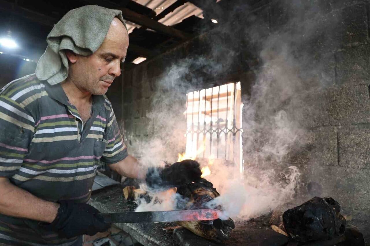 Adana’da aralarında demirci ustalarının da olduğu 14 kişilik ekip, 100 dereceye yaklaşan ocak sıcaklığında alın teri ile ’Kele ve Paça’ ütüleme mesaisi yapıyor.