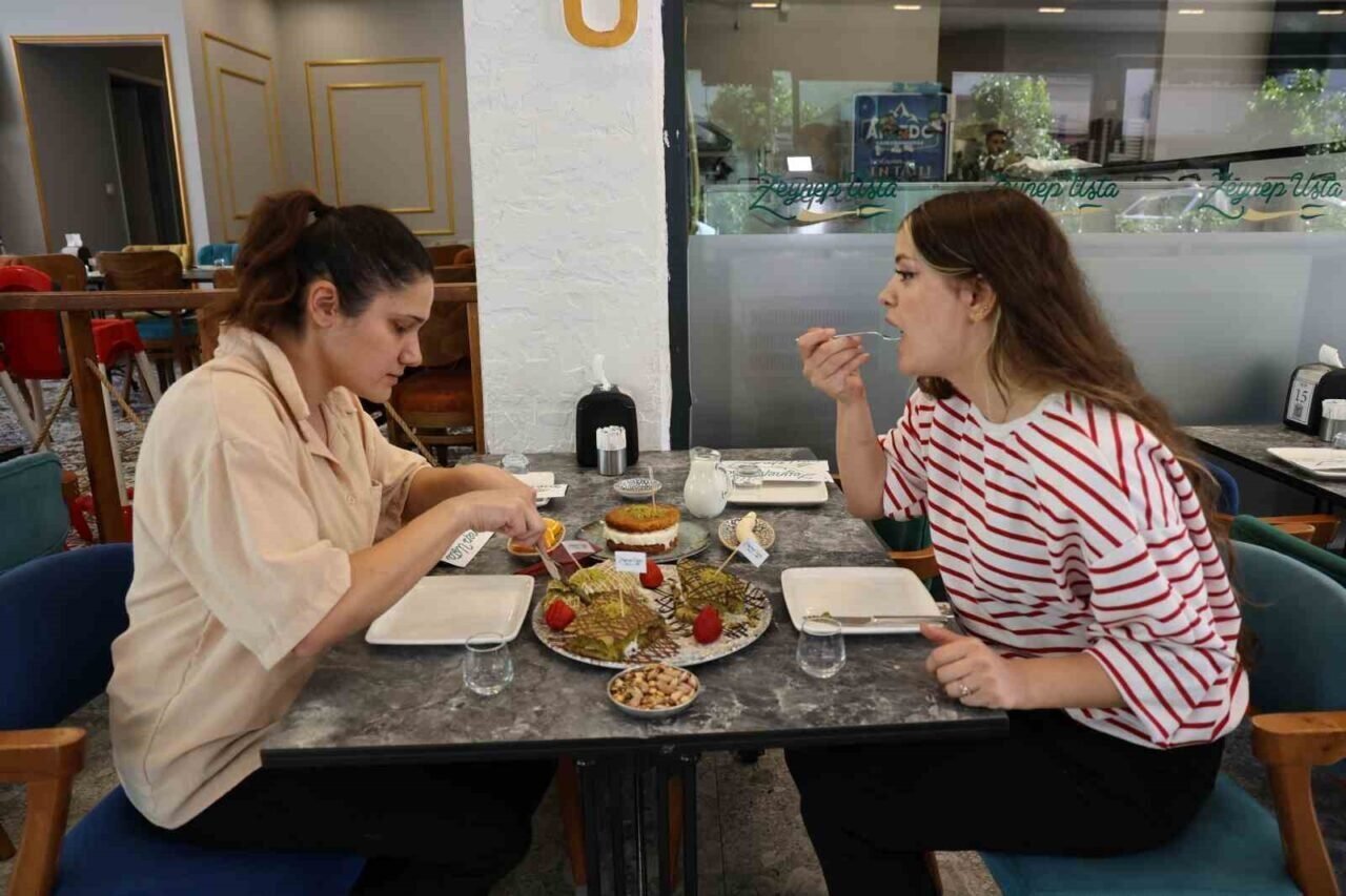 Sıcak havalarda dondurmalı ve meyveli tatlılara ilginin arttığını aktaran tatlıcı Zeynep Geyik, “Yaz sıcaklarının gelmesiyle birlikte insanlar serinlik arıyor. Tatlıdan vazgeçmeyenler için biz tatlıları dondurma ile çeşitlendiriyoruz. Dondurmalı künefeler ve katmerler çok yoğun talep görüyor. İnsanlar hem serinlemek hem de tatlı ihtiyaçlarını karşılamak için künefe arası dondurma, katmer arası dondurmaya talep gösteriyor” diye konuştu.