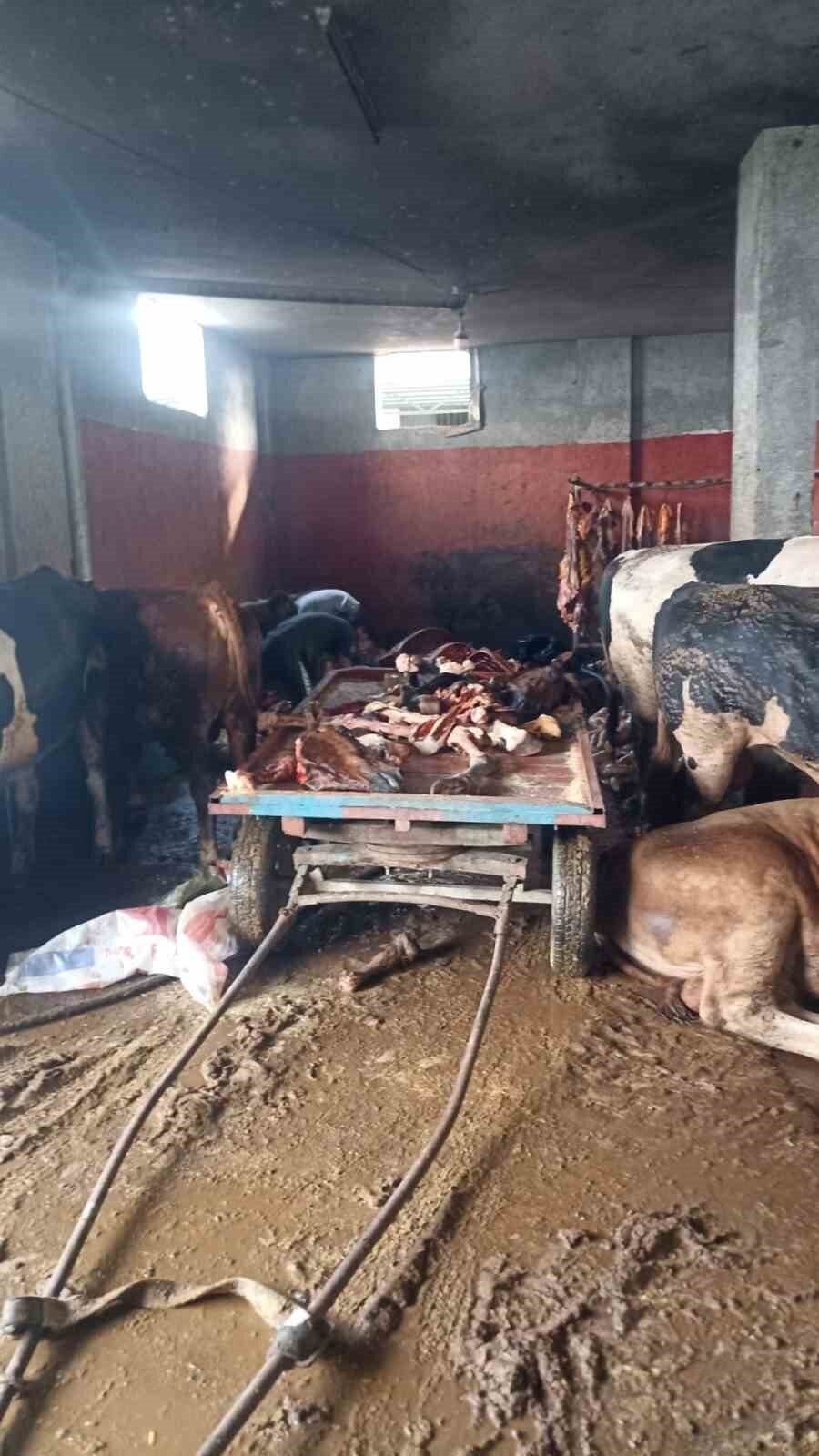 İkametin bahçesinde ise 2’si tay 4 at bulundu. Atlar, ilgili kurumların ekipleri tarafından hayvan barınağına götürülmek üzere teslim alındığı öğrenildi. İl Tarım Müdürlüğü tarafından alınan numunelerin ardından, etler imha edilmek üzere zabıtaya teslim edildi.