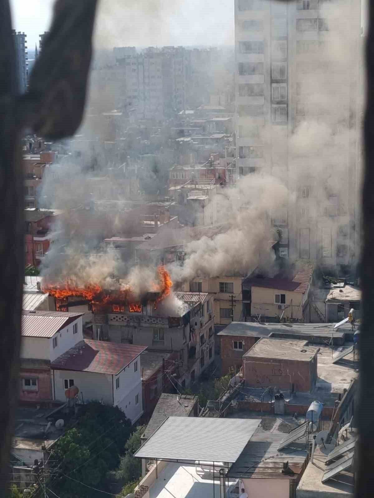 Adana’da 3 katlı ev yanarak kullanılamaz hale geldi