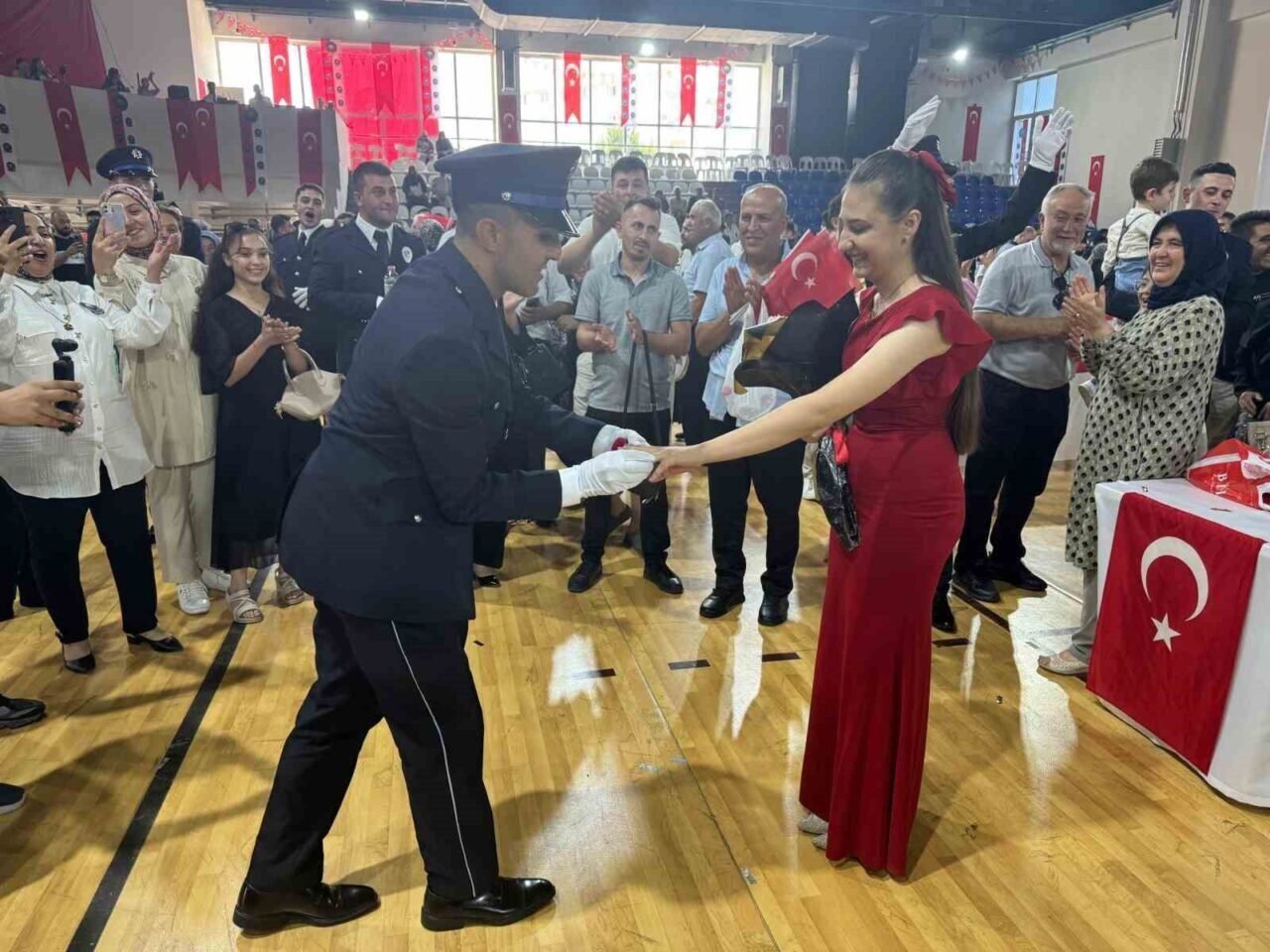 Törenin sonunda ise duygusal bir sürpriz yaşandı. Polis adaylarından Kadir Avcu ve Mehmet Gürel Timurcioğlu, mezuniyet coşkusunu evlilik teklifleriyle taçlandırdı. Avcu, Nurdane Gürbüz’e; Timurcioğlu ise Didem Küçük’e evlenme teklif ederek salonda alkış fırtınası estirdi.