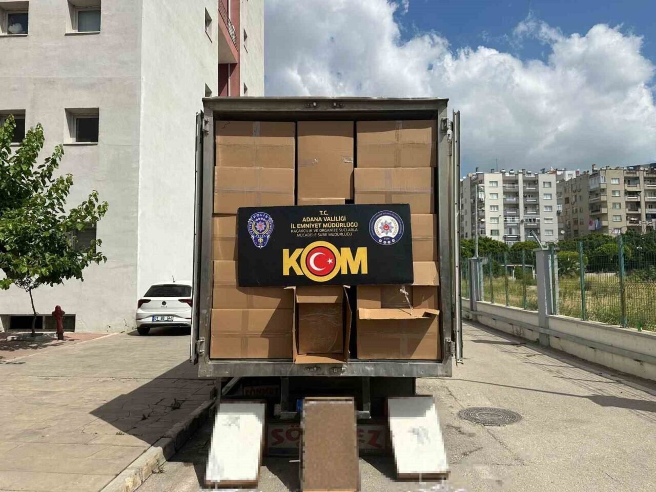 Adana’da piyasa değeri 44 milyon 512 bin TL olan 11 milyon 687 bin 500 adet gümrük kaçağı doldurulmuş sigara ele geçilirdi, 2 şüpheli tutuklandı.