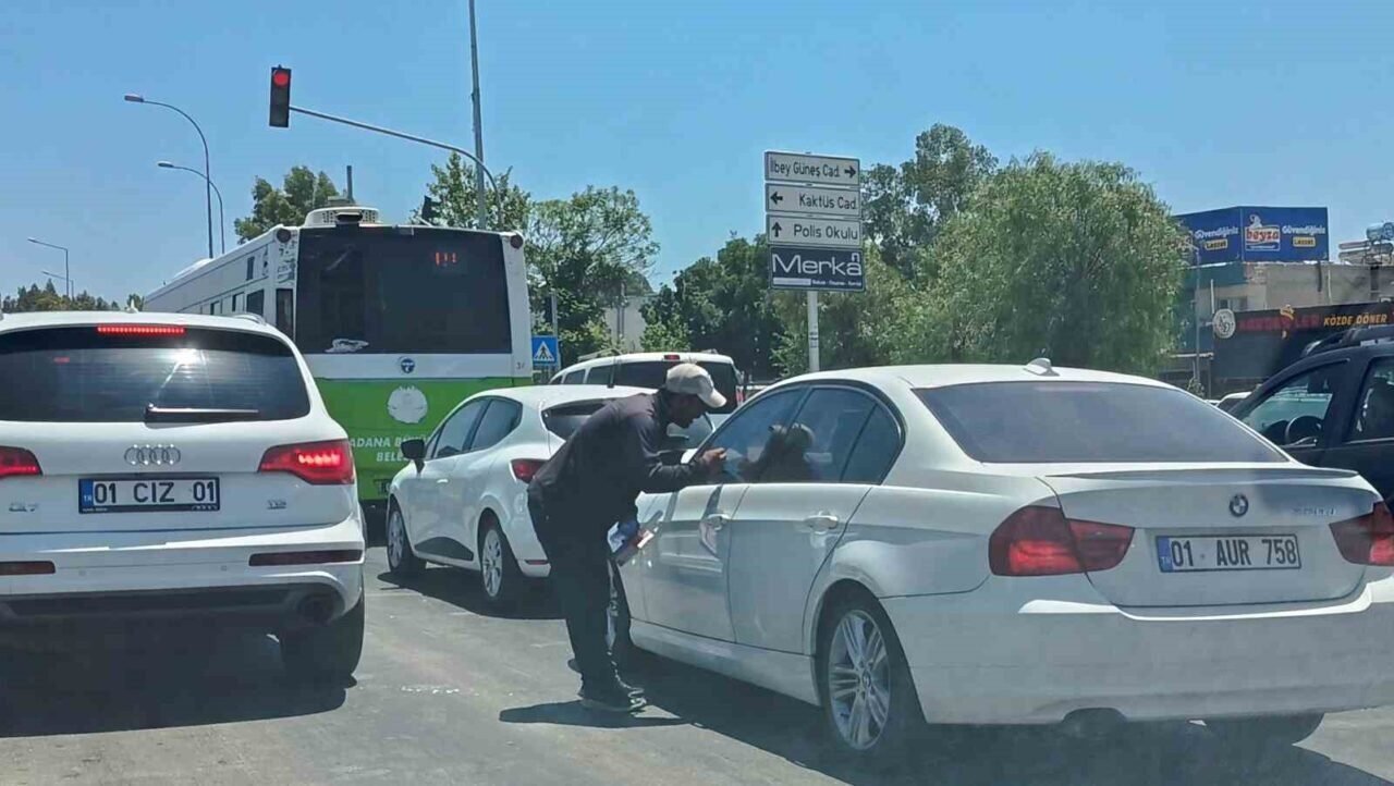 Adana’nın kırmızı ışıkta duran araçların camına aniden dayatılan bezler, ardından gelen para taleplerinde bulunan şahıslar özellikle para alamadıklarında agresif tavırlarıyla hem trafiği hem de sürücülerin güvenliğini tehdit ediyor. Yaşanan o anlardan biri de kameraya saniye saniye yansıdı.