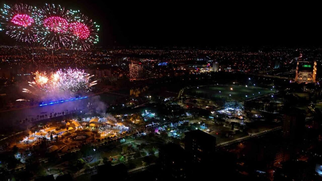 ADANA’DA SEYHAN NEHRİ ÜZERİNDE 400 DRON, LAZER VE HAVAİ FİŞEKLER İLE YAPILAN GÖSTERİ VATANDAŞLAR TARAFINDAN İLGİYLE İZLENDİ.