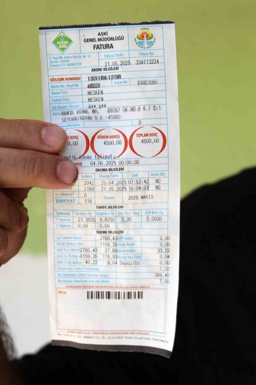 Adana’da eve 4 bin 500 TL su faturası geldi: “Havuzum olsa böyle bir fatura gelmezdi”