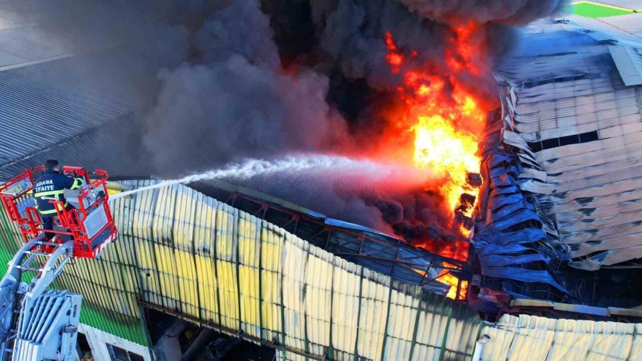 Adana’da geri dönüşüm fabrikasında çıkan yangın havadan görüntülendi. Dron ile yoğun duman ve alevler görüntülenirken itfaiye ekiplerinin yangına müdahalesi sürüyor.