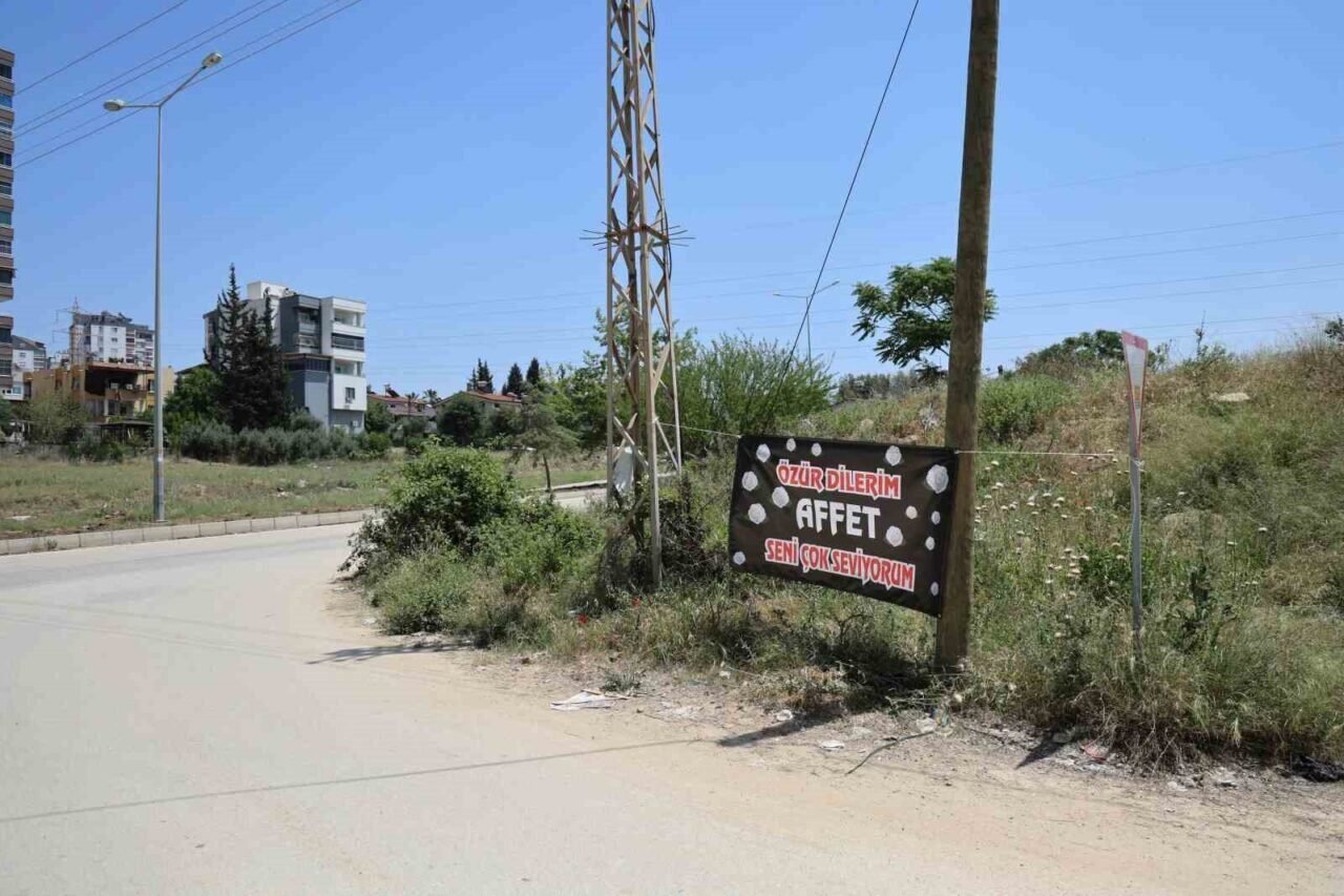 Adana’da bir kişinin astığı, “Özür dilerim affet seni çok seviyorum”