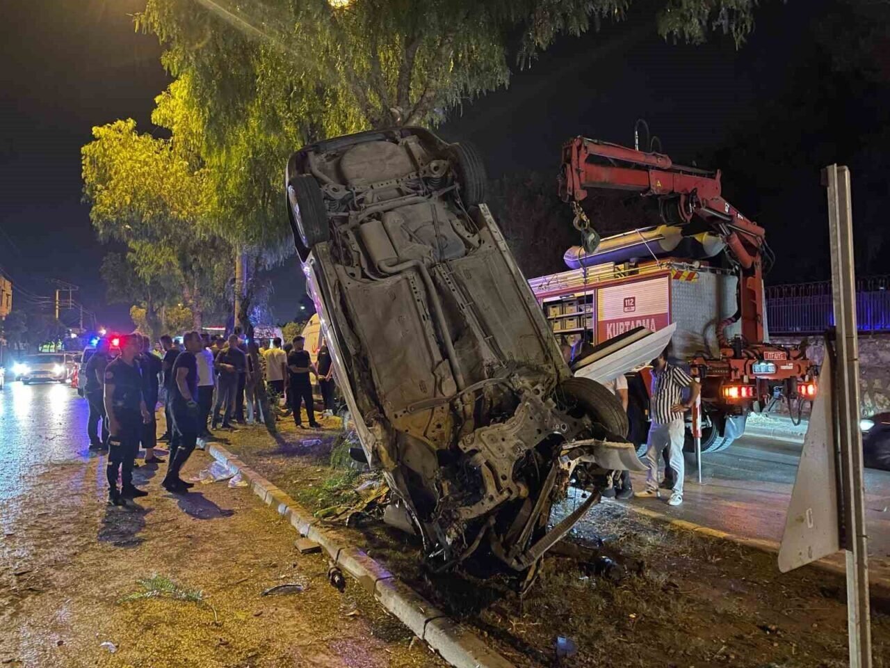 Adana’da kontrolden çıkan otomobil refüjde asılı kaldı: 5 yaralı