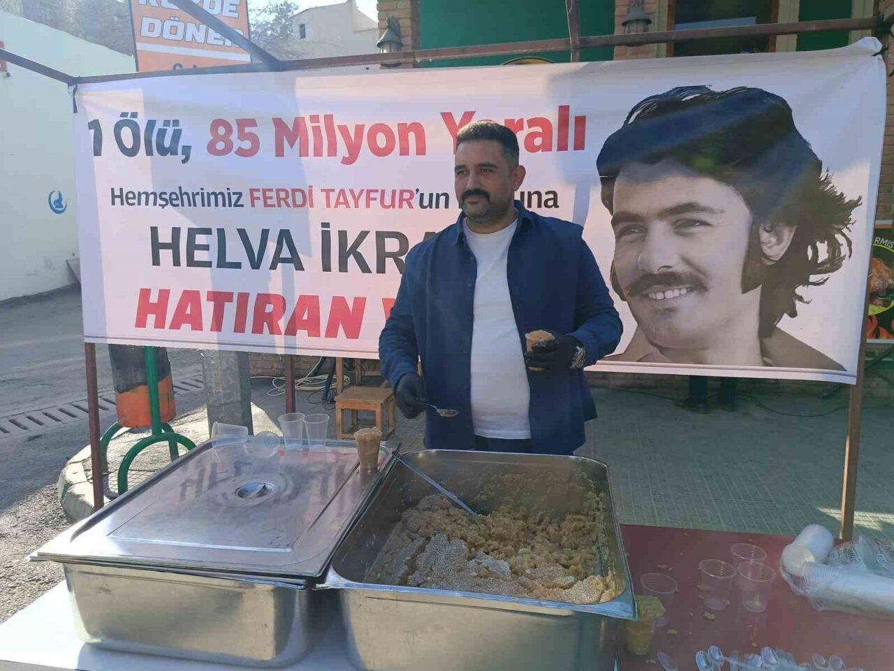 Kozan ilçesinde esnaflık yapan Murat Mercan isimli vatandaş Adanalı arabesk sanatçısı merhum Ferdi Tayfur’un ruhu için helva dağıtımı gerçekleştirdi. Cadde üzerine helva kazanlarını kuran ve ‘1 ölü 85 milyon yaralı’ afişi asan esnaf Murat Mercan, Ferdi Tayfur’un ölümüne çok üzüldüğünü ifade etti. Mercan, hazırladığı helvaları merhum Ferdi Tayfur’un şarkıları eşliğinde vatandaşlara ikram etti.
