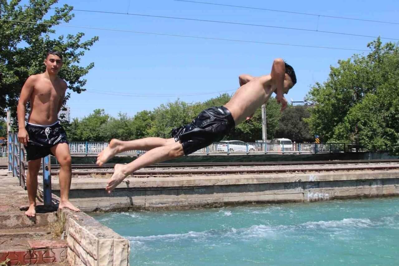 Adana’da sıcaklığın 40 derecenin üzerine çıkmasıyla birlikte gençler ve çocuklar, yasak bir o kadar da tehlikeli olmasına rağmen serinlemek için sulama kanallarına akın ediyor.