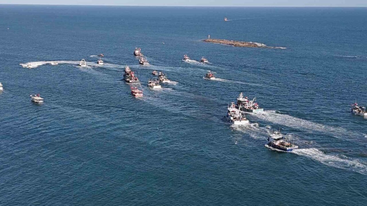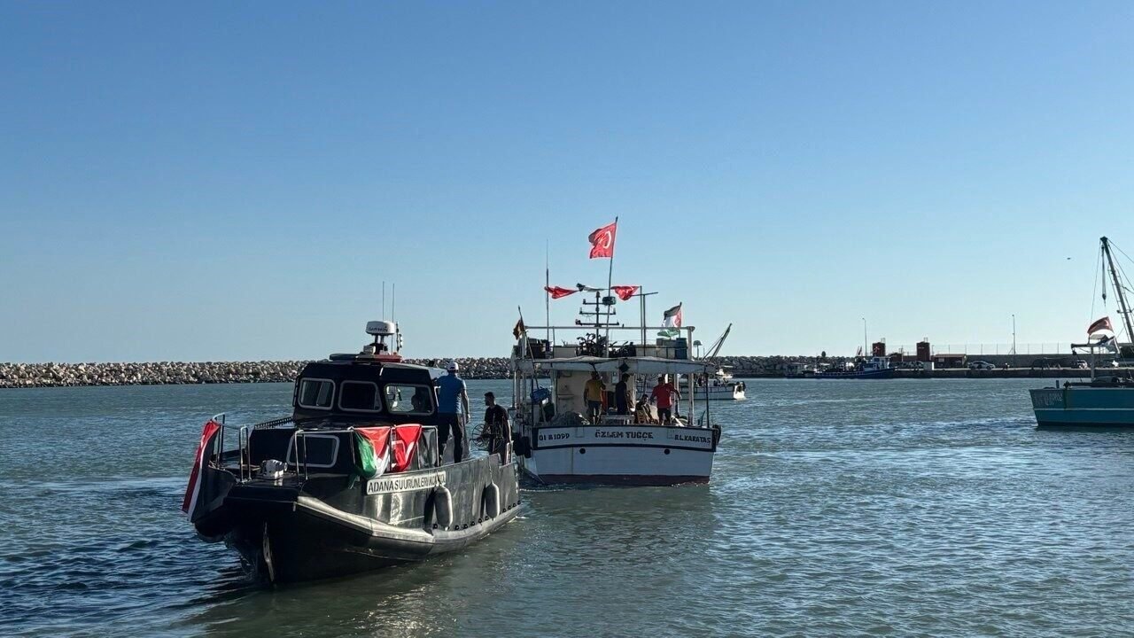 Adana’nın Karataş ilçesinde vatandaşlar, İsrail’in Gazze’ye insani yardım taşıyan Küresel Sumud Filosu’na saldırısını protesto için teknelerle denize açıldı.