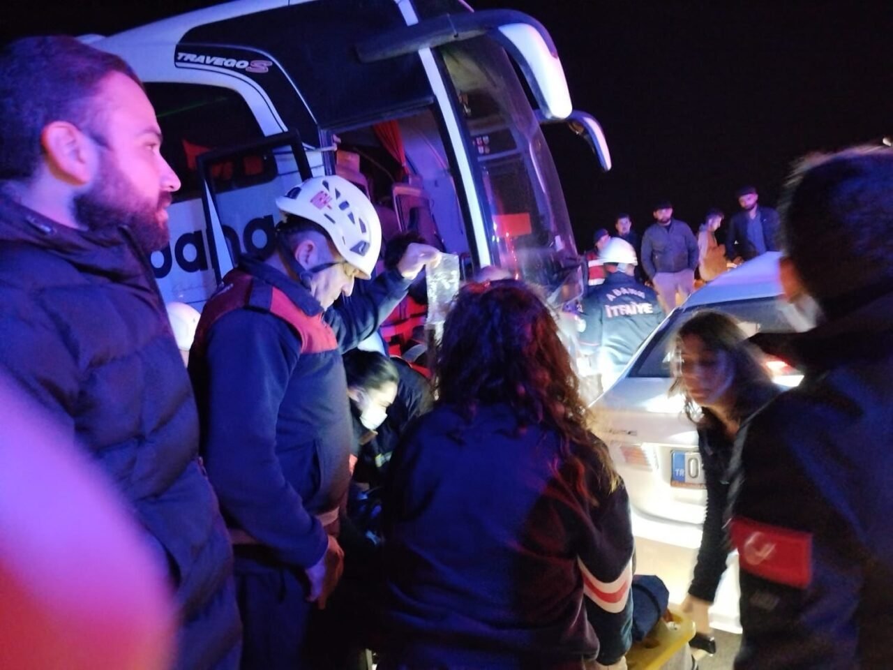Adana’nın Kozan ilçesinde otomobil ile yolcu otobüsünün çarpışması sonucu meydana gelen kazada 2 kişi yaralandı.