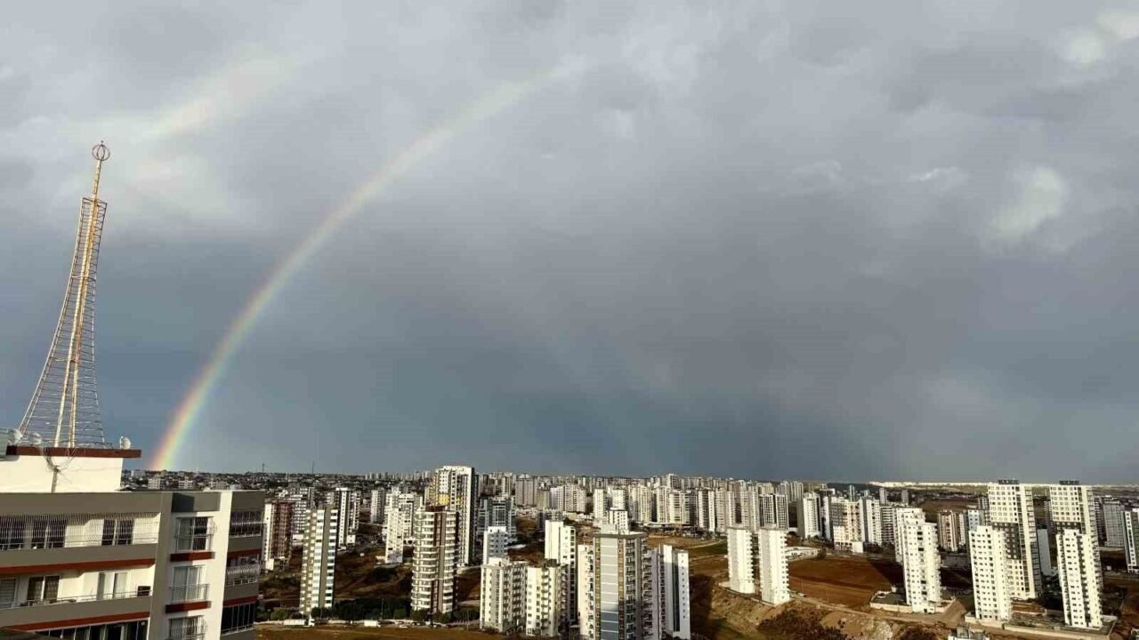 Yağışın ardından gökyüzünde ortaya çıkan gökkuşağı, Adanalılara görsel bir şölen sundu. Renklerin tüm tonlarını barındıran gökkuşağı, izleyenlere unutulmaz anlar yaşattı.