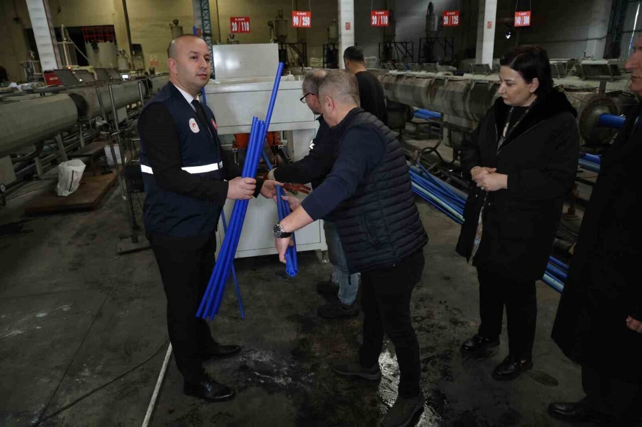 Denetime katılan Mesleki Hizmetler Genel Müdürü Banu Aslan, gazetecilere açıklamalarda bulundu. Aslan, 2024 yılında yaklaşık 20 bin denetim gerçekleştirdiklerini belirterek, “Bu denetimlerde 180 milyon TL idari para cezası uyguladı. Bugün plastik boru sistemleri malzemelerinden numune alımı yolu ile gerçekleştirdiğimiz denetimde, numunesi alınan ürünlerin farklı sıcaklık ve sürelerde mekanik deneyler ile sızdırmaya, akmaya, kokmaya yönelik deneyleri yapılacak ve sonuçların standarda uygun olup olmadığı incelenecek. Standartlara ve mevzuatlara uygun olmayan ürünlerin üreticilerine gerekli idari işlemler yapılacak” ifadelerini kullandı.