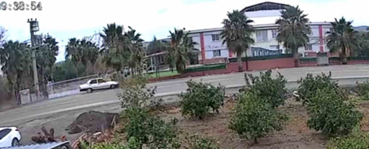 Hatay’ın Erzin ilçesinde ağaca çarparak ikiye bölünen Tofaş otombilin sürücüsü yaralandı. O anlar anbean güvenlik kamerasına yansıdı.