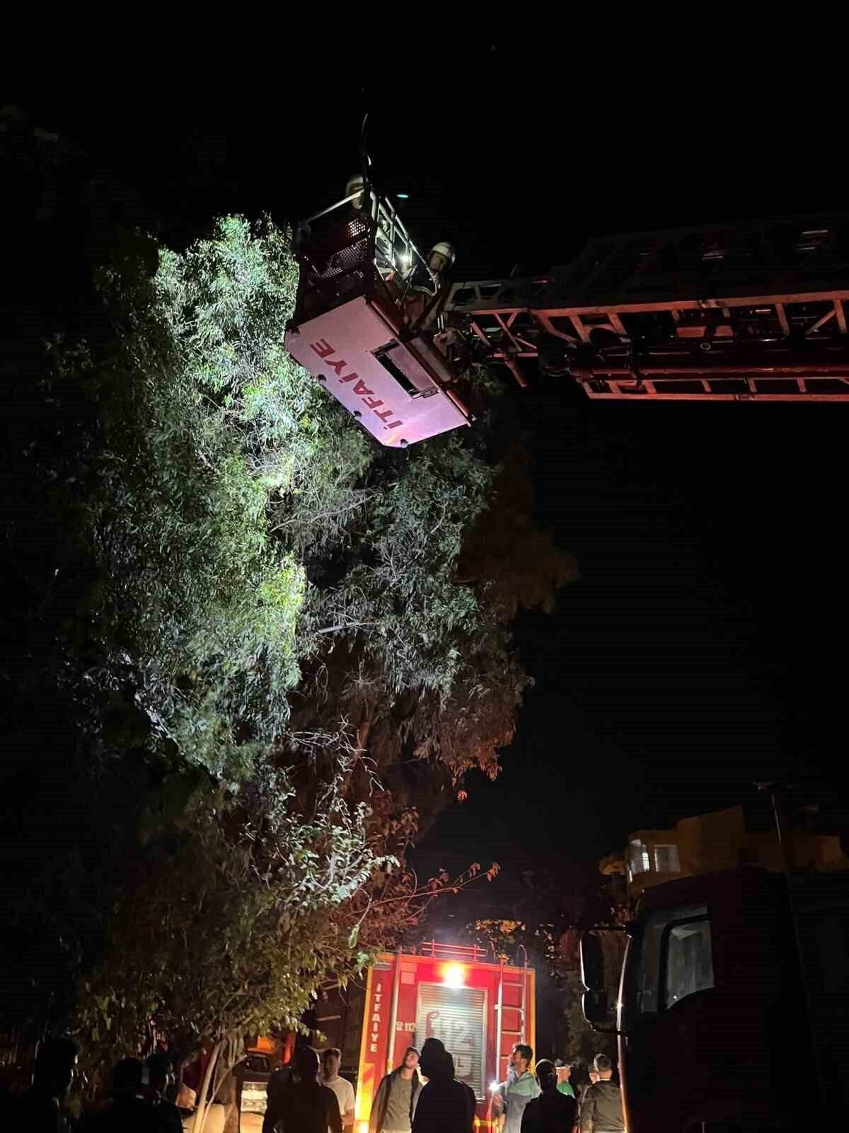 Ağaçta sıkışan kediyi itfaiye kurtardı
