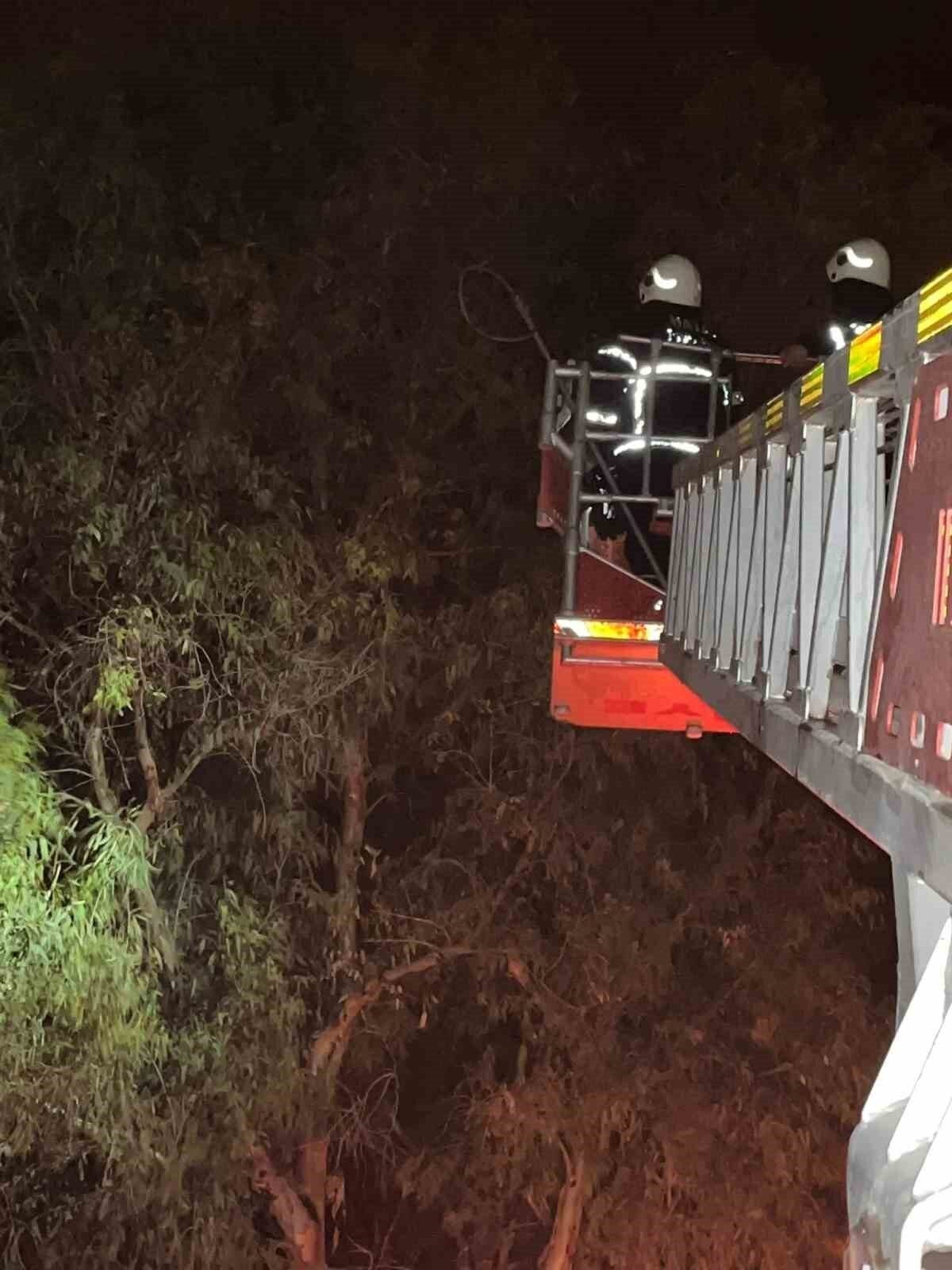 Hatay’ın Samandağ ilçesinde ağaçta mahsur kalan kedi, itfaiye ekiplerince kurtarıldı.
