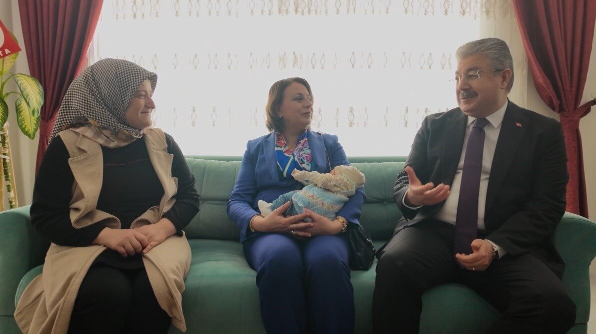 Cumhurbaşkanı Recep Tayyip Erdoğan’ın 2025 yılını “Aile Yılı” ilan etmesinin ardından yeni doğum yapan ailelere verilen çocuk yardımını alan Çağıl’ın ailesinin ilk misafiri Vali Erdinç Yılmaz ve eşi Şenay Yılmaz oldu.