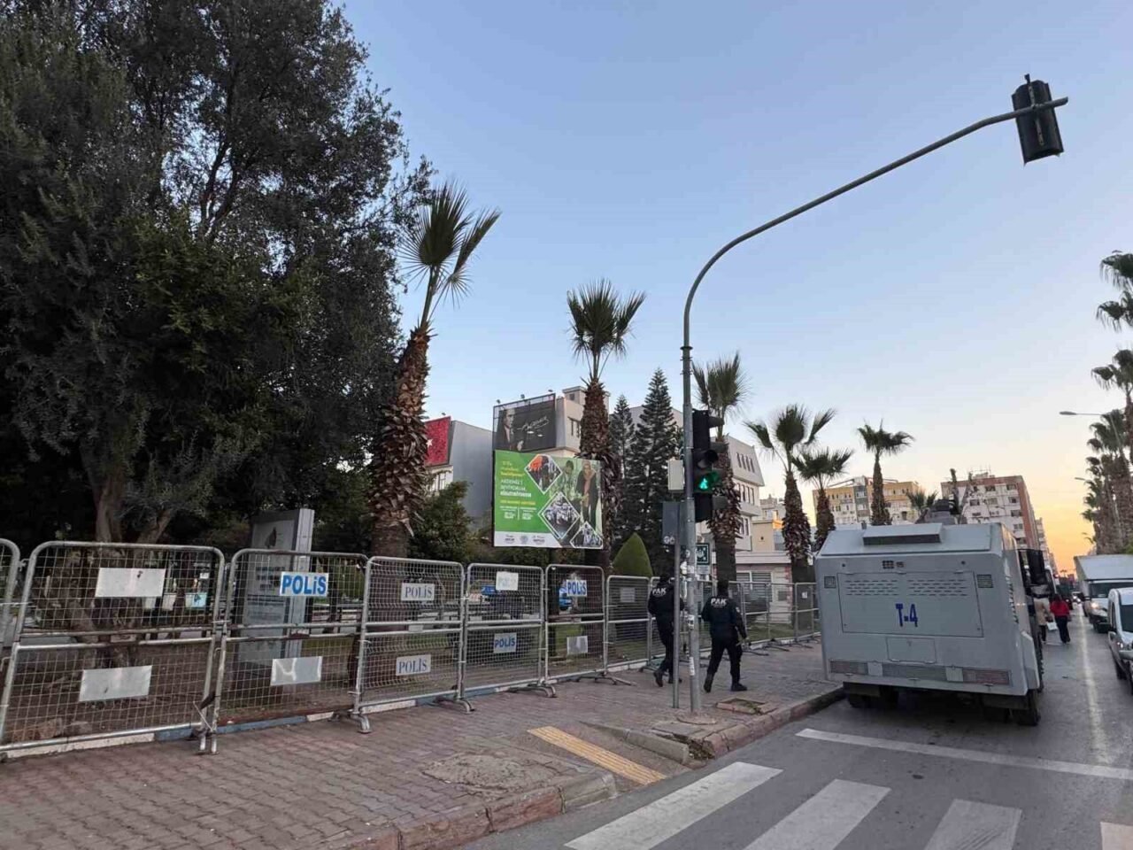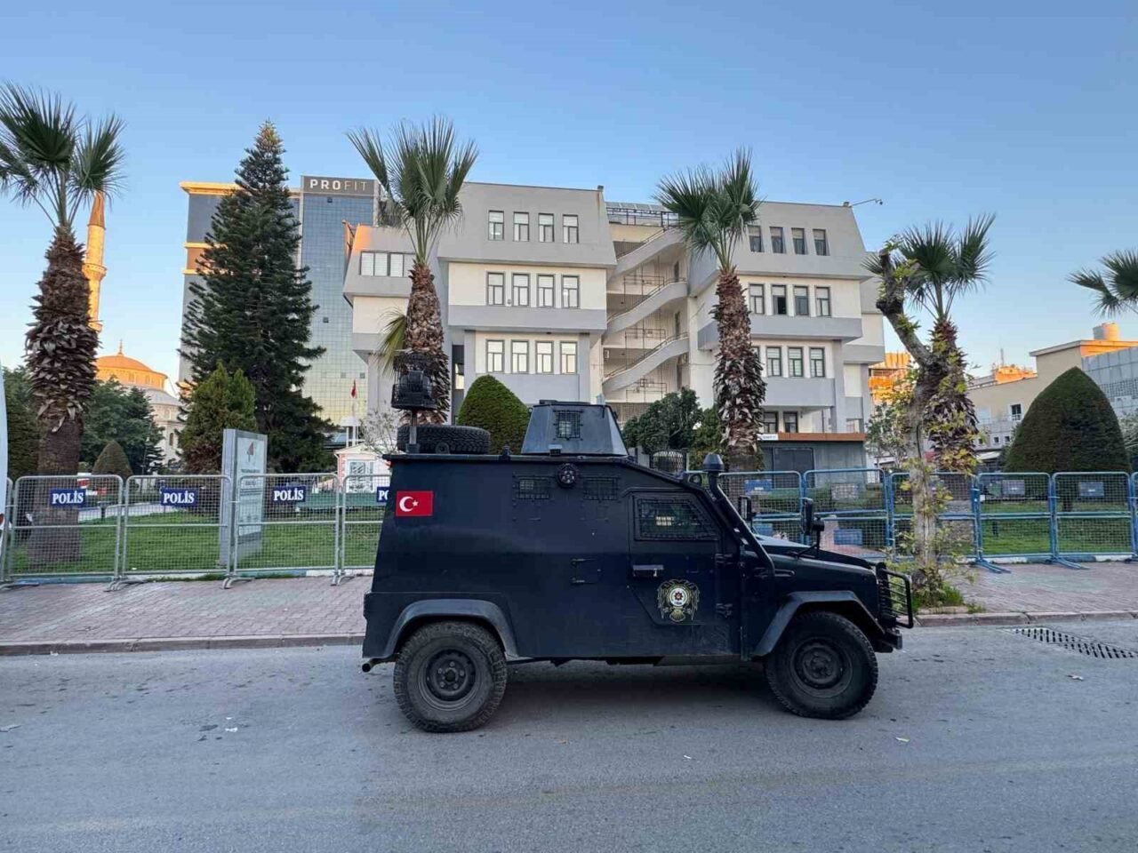 Mersin’de DEM Partili Akdeniz Belediye Başkanı Hoşyar Sarıyıldız ve Başkan Yardımcısı Nuriye Arslan ile 4 meclis üyesinin gözaltına alınmasının ardından bariyerlerle çevreli binaya girmek isteyen kişilerle güvenlik güçleri arasında gerginlik yaşandı.