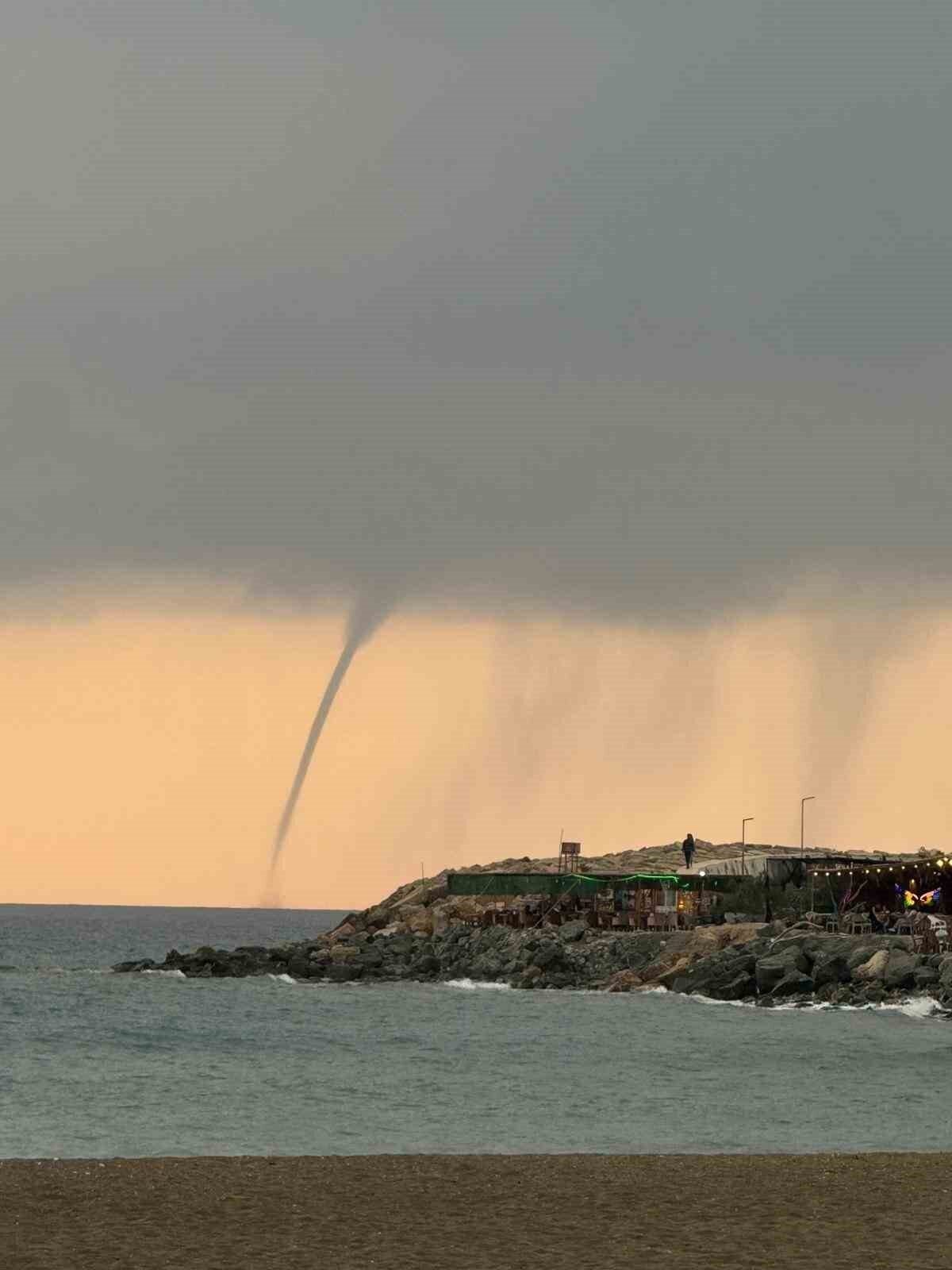 Hatay’da Akdeniz açıklarında deniz yüzeyinde oluşan hortum, vatandaşlar tarafından cep telefonu kamerasıyla görüntülendi.
