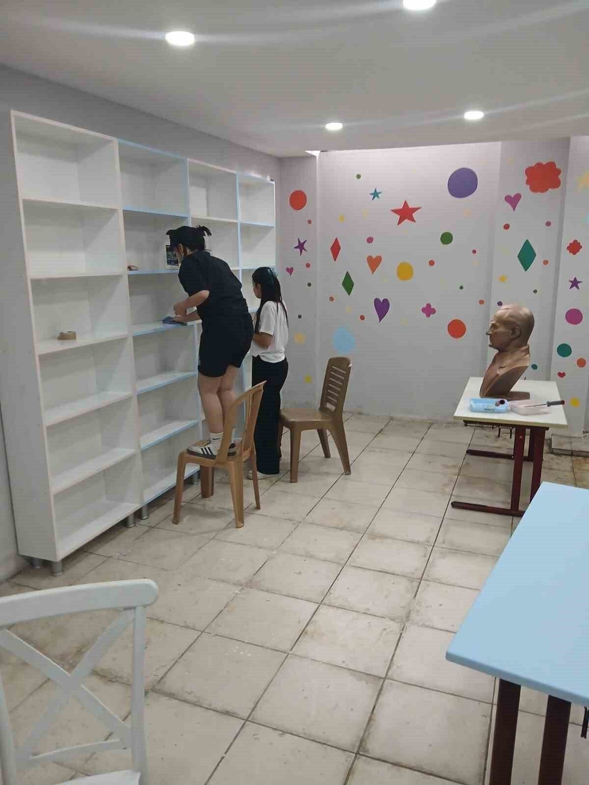 Öğrenciler Emilay Günsay, Mehmet Zeki Erciyaş, Buse Karakurt, Selma Kabasakal, Rahime Al, Aziza Ali, Mine Altay ve Berfin Kılgı, öğretmenleriyle birlikte kapı girişinden duvar ve tavan tadilatına, elektrik altyapısından boyama işlemlerine kadar tüm süreci üstlendi. Alanı daha cazip hale getirmek amacıyla çocuk temalı duvar resimleri ise sanatçı Derya Tatlıcı tarafından yapıldı.