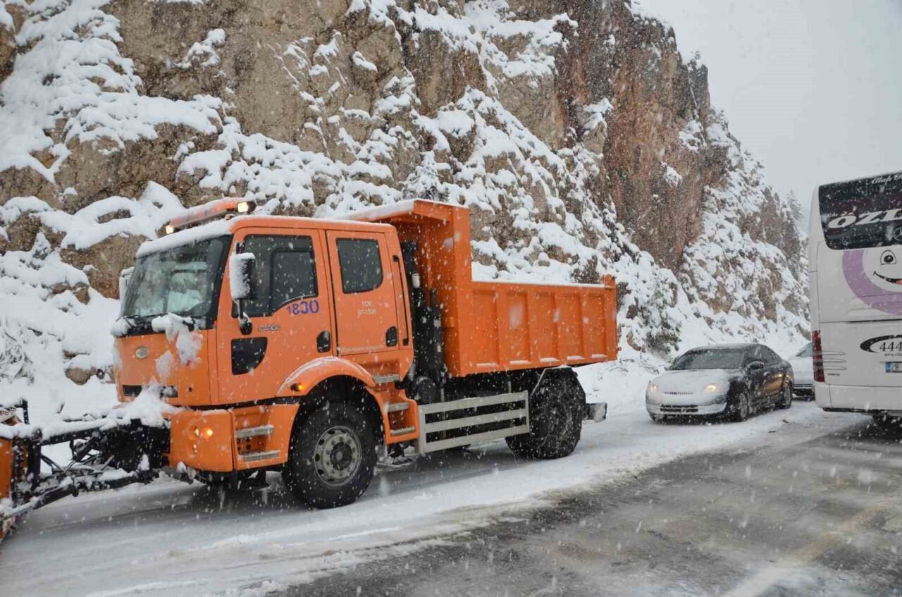 Antalya’yı Konya’ya bağlayan Akseki-Seydişehir karayolu, yoğun kar yağışı ve buzlanma nedeniyle tırların geçişine kapatıldı.