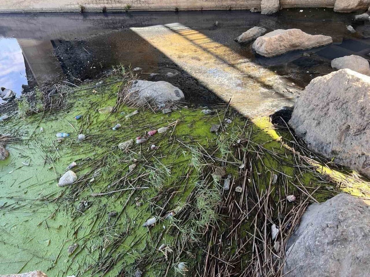 Mahalle sakinlerinden İbrahim Simsar ise, “Bu bizim Karaçay’dan akan su, 30 yıldır böyle. Aynı şekilde boyalı ve pis bir koku yaymaktadır. Otuz yıl önce çocukluğumuzda burada canlı balık tutardık. Çocuklar suya inerdi, hatta bazı yerlerden kaynak suyu çıkardı, biz o sudan içerdik. Ama şimdi içmeyi bırak, bu zamana kadar herhangi bir çözüm bulunamadı. Bir an önce arıtılmasını devlet büyüklerimizden arz ediyoruz” ifadesini kullandı.