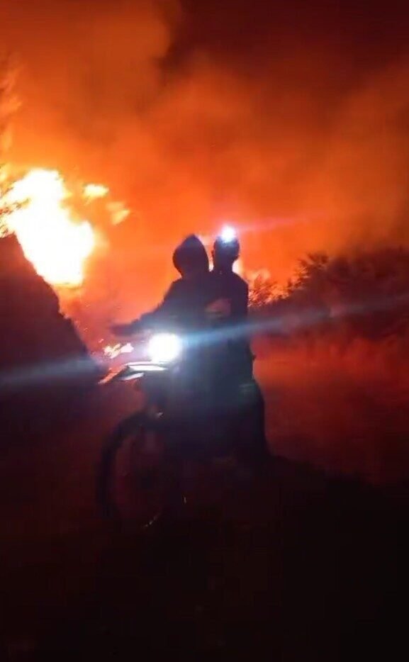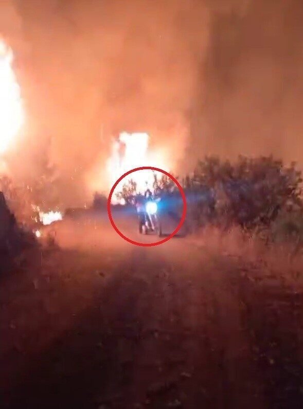 Öte yandan, yangının alevli olduğu anlardaki bir itfaiye personelinin yaşlı bir vatandaşı motosikletle yangın bölgesinden kurtardığı anlar bir vatandaşın cep telefonu kamerasına yansıdı. Görüntülerle alevlerin arasından itfaiye personelinin yaşlı bir vatandaşı motosikletle kurtardığı anlar yer aldı.