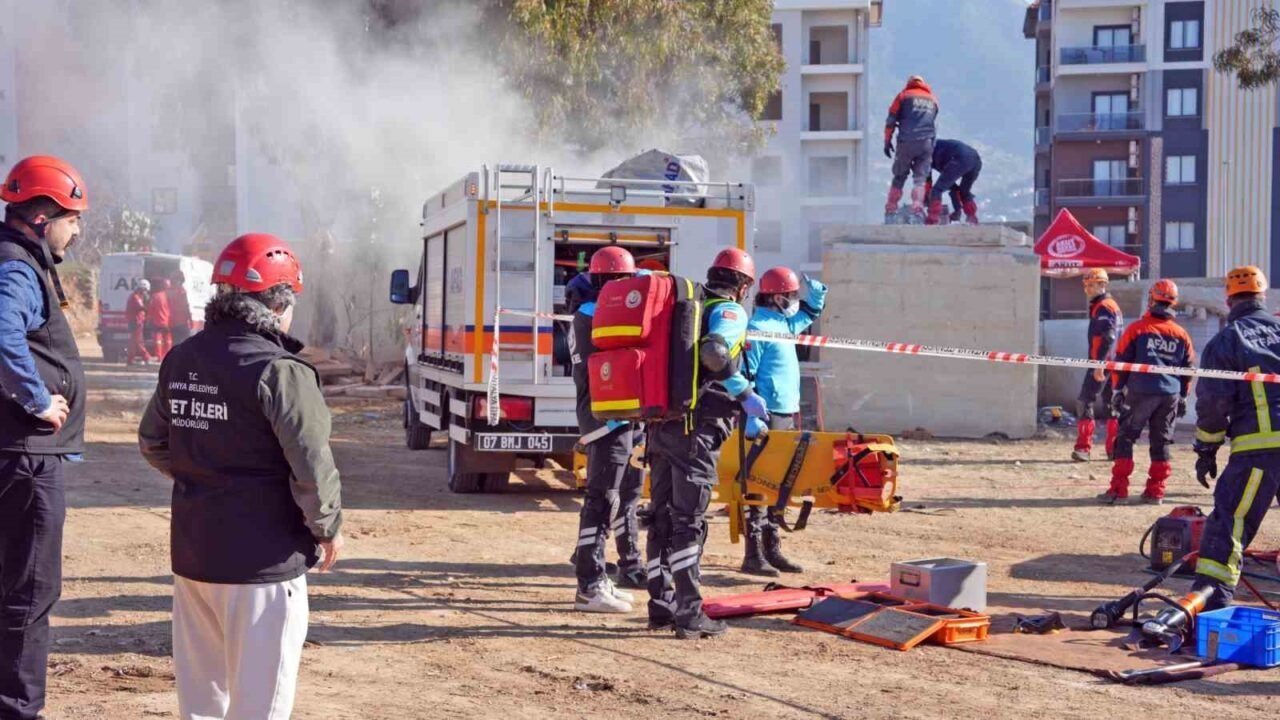Antalya’nın Alanya ilçesinde, Alanya Belediyesi ve AFAD iş birliğiyle deprem farkındalığını artırmak ve kurumlar arası koordinasyonu güçlendirmek amacıyla kapsamlı bir deprem tatbikatı düzenlendi. Tatbikat, 6 Şubat 2023’te meydana gelen ve Hatay başta olmak üzere 11 ili etkileyen depremde hayatını kaybedenlerin anısına ithaf edildi.