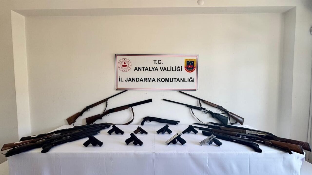 Antalya İl Jandarma Komutanlığı KOM Şube Müdürlüğü, Jandarma Suç Araştırma Timi (JASAT) ve Alanya İlçe Jandarma Komutanlığı ekipleri, ruhsatsız silah bulunduran, taşıyan ve satışını yaptığı belirlenen şüphelilere yönelik 6 ayrı adrese eş zamanlı operasyon düzenledi. Düzenlenen operasyonlarda; 8 adet tabanca, 13 adet av tüfeği, 8 adet tabanca şarjörü, 155 adet tabanca fişeği, 180 adet av tüfeği fişeği ele geçirildi.