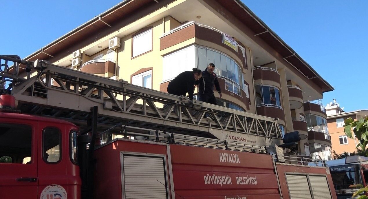 Antalya’nın Alanya ilçesinde elektrikli sobadan çıkan yangında, evde mahsur kalan vatandaşları itfaiye ekipleri merdiven yardımı ile aşağıya indirdi.