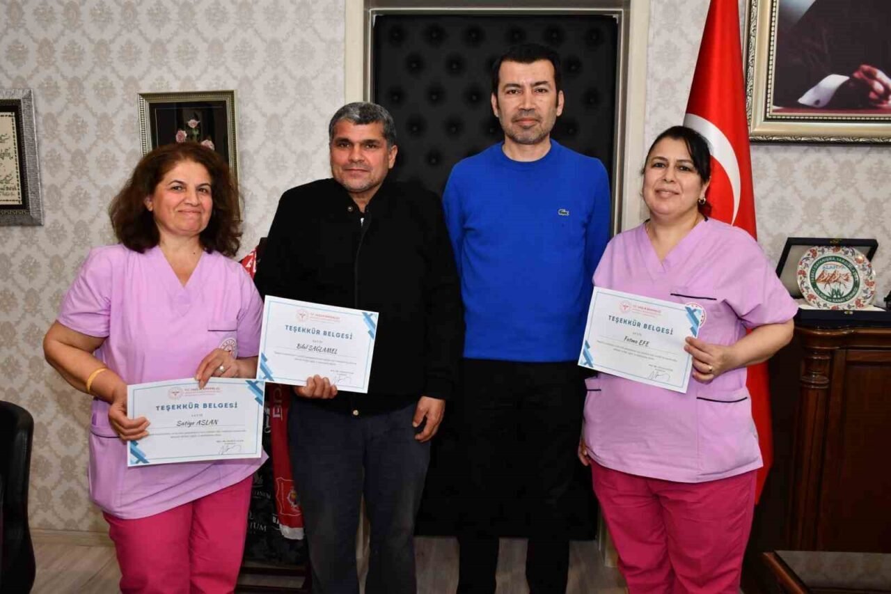 Ziyaret esnasında verdikleri hizmetlerden dolayı sağlık emekçilerine teşekkür eden Doç. Dr. Güler, “Meslek hayatınız boyunca hastalarımıza büyük bir özveriyle hizmet etmiş ve emekliye ayrılmış olan değerli çalışanlarımıza birlikte çalıştığımız süre içerisindeki özverili ve başarılı çalışmaları için teşekkür eder, emeklilik yaşamınızda sağlık ve mutluluk dilerim” dedi. Başhekim Doç. Dr. Yılmaz Güler, kendilerine bugüne kadar vermiş oldukları hizmetlerden dolayı çalışanlara teşekkür belgesi takdim etti.