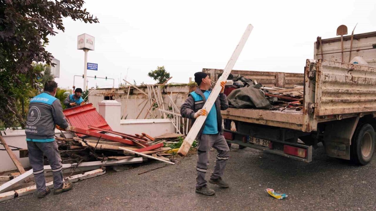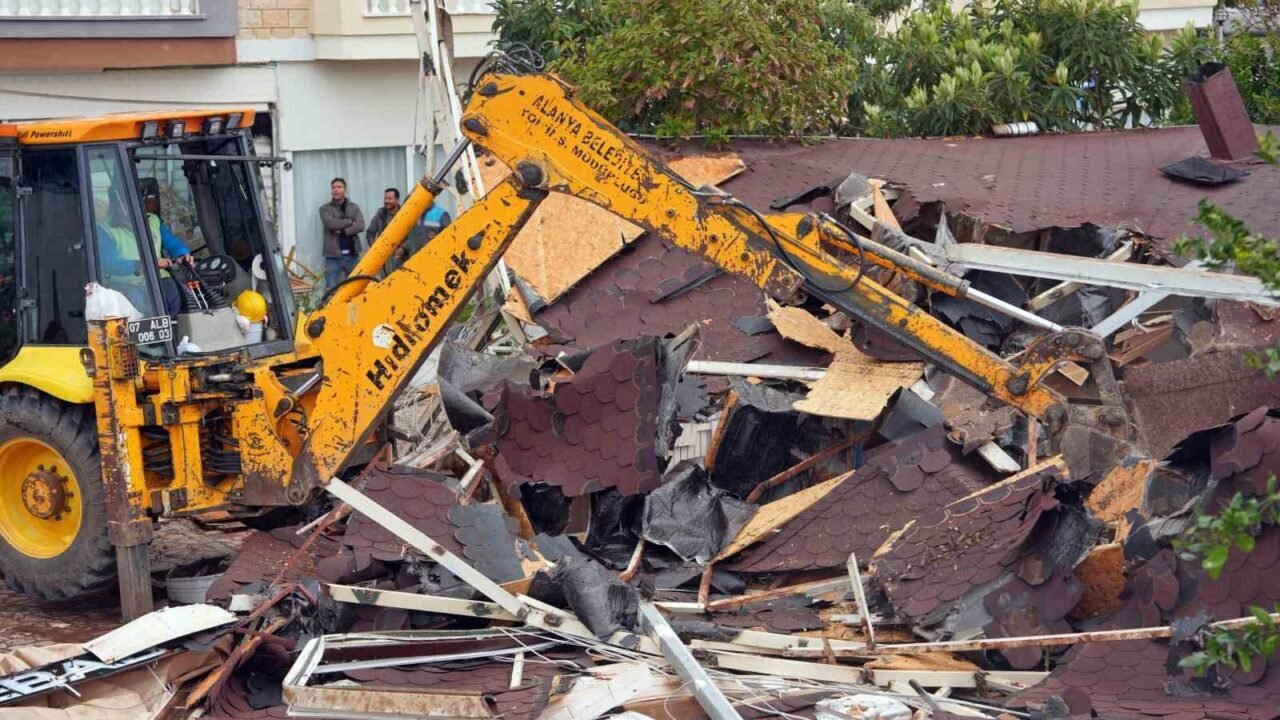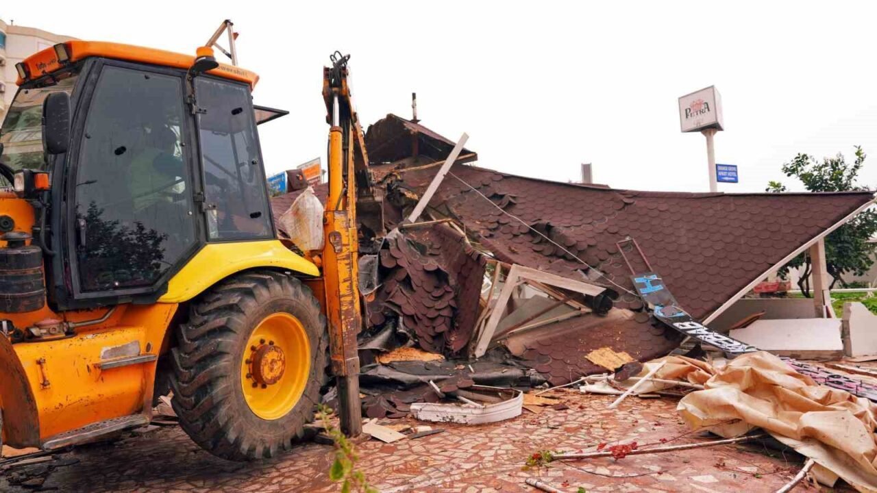 Alanya Belediyesi’ne ait 862 metrekarelik alanı işgal eden restoran ve restorana ait yapılaşma tamamen yıkılarak alan temizlendi. Tosmur Mahallesi D-400 Karayolu üzeri Tosmur Kavşağı batısı 3. Sokak’taki alanın, imar planında park alanı olarak ayrıldığı belirlendi.