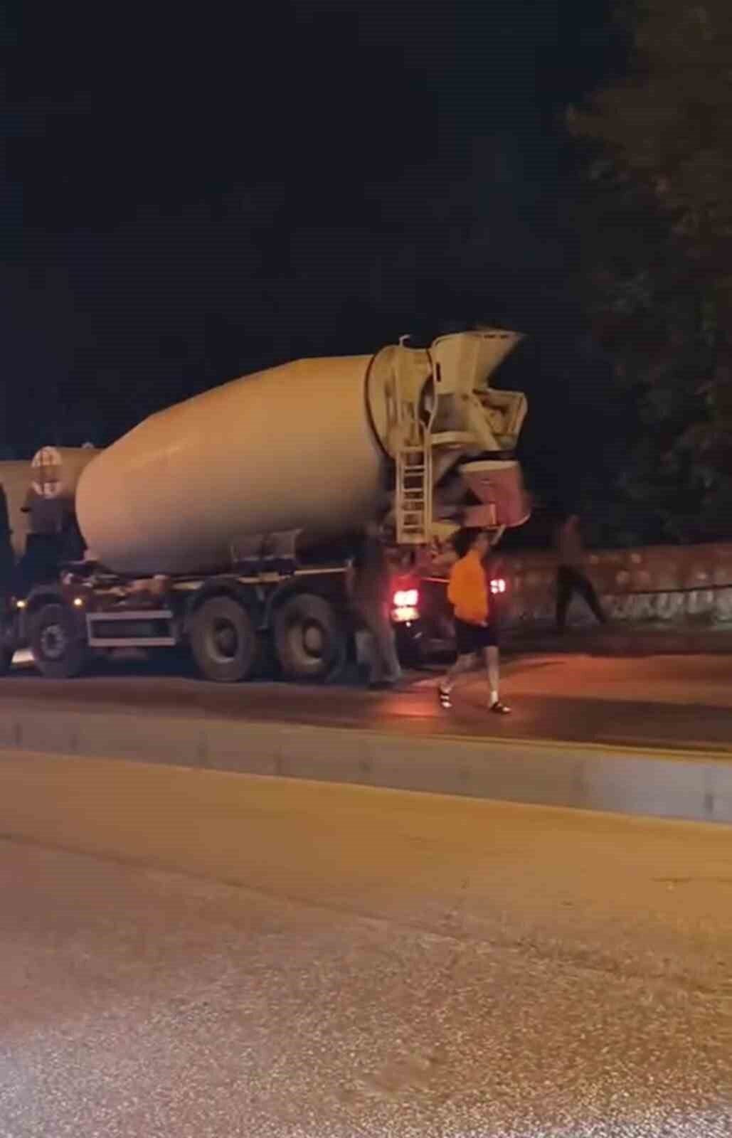 Alevlere teslim olan otomobile mikser sürücüsünden müdahale