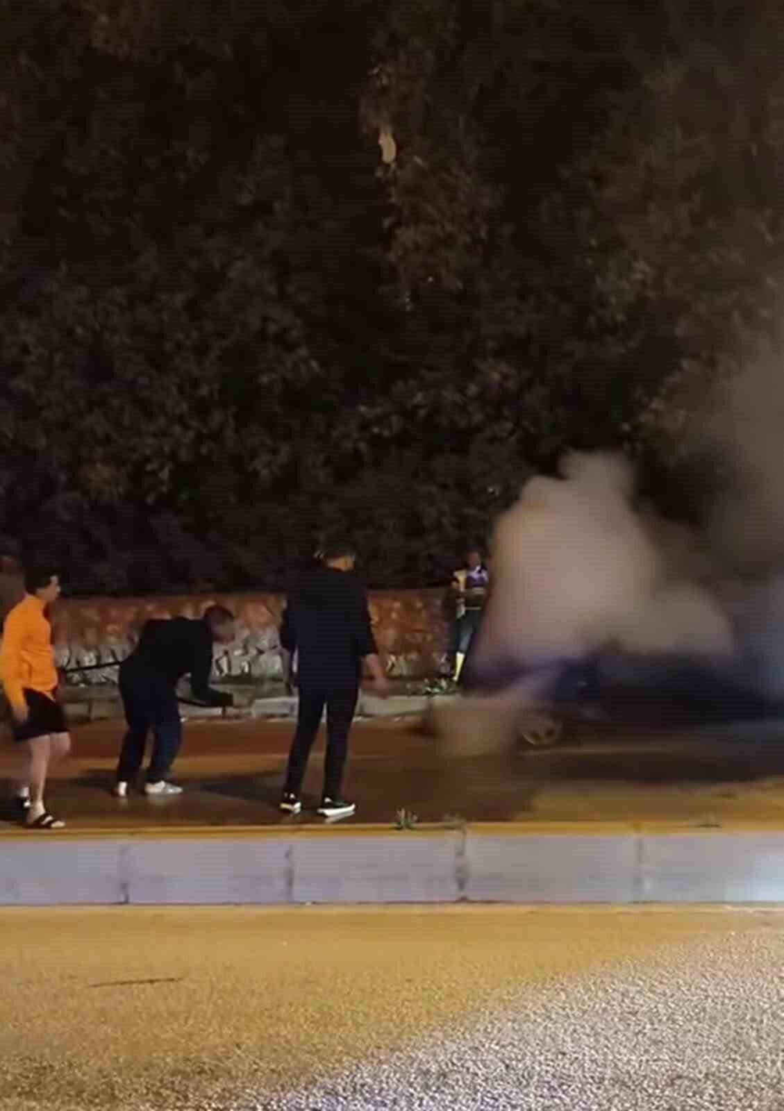 Hatay’da seyir halindeyken yanmaya başlayan Fiat Tofaş’tan yükselen alevler, mikser sürücüsünün hızlı müdahalesiyle kontrol altına alındı.