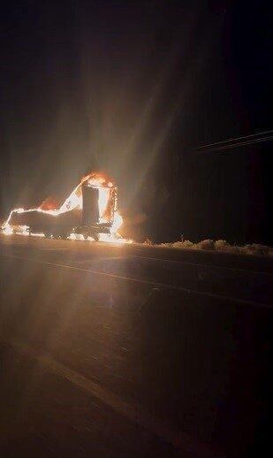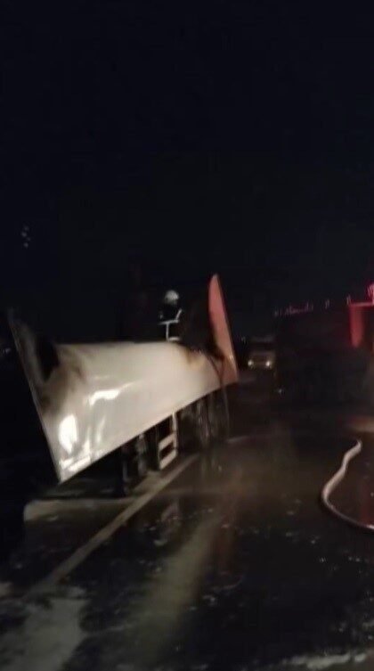 Alevlere teslim olan tır yanarak kullanılamaz hale geldi