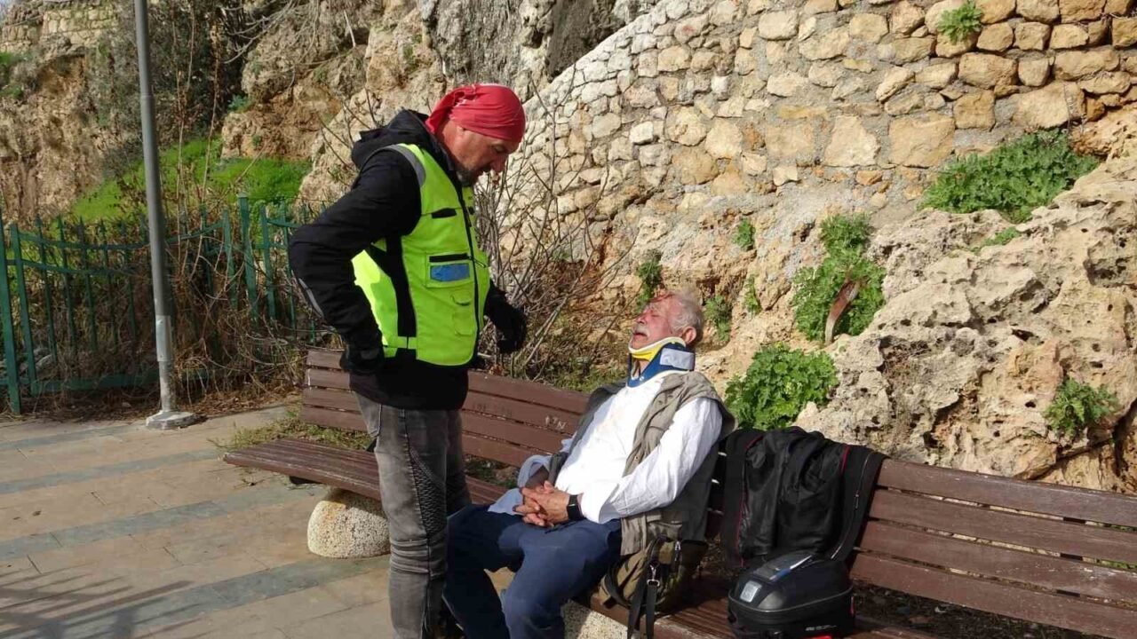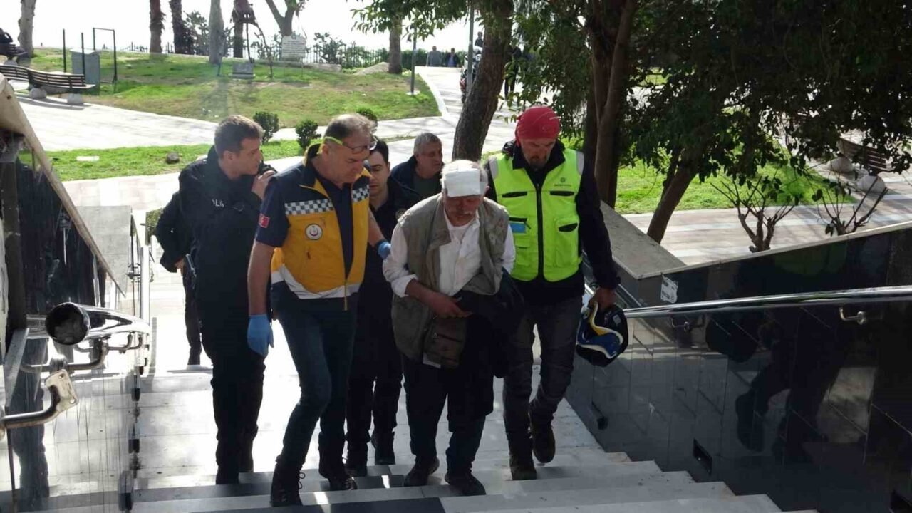 Olay, saat 12.00 sıralarında Antalya’nın Muratpaşa ilçesi Konyaaltı Caddesi üzerinde bulunan Yavuz Özcan Parkı’nda meydana geldi. 112 Acil Çağrı Merkezi’ne bir kişinin kayalıklardan düştüğü ve mahsur kaldığı ihbarı üzerine verilen adrese itfaiye, polis ve sağlık ekipleri sevk edildi. Kısa sürede olay yerine gelen polis ekipleri parkın girişe yasak olan kayalık bölümünde bir kişinin yattığını gördü. Yaklaşık 3 metrelik patika alandan yuvarlandığı anlaşılan ve vatandaşların yardımıyla bulunduğu yerden çıkartılıp, isminin Muharrem E. (67) olduğu öğrenilen yaşlı adama ilk müdahale, motorize 112 ekibi tarafından yapıldı.