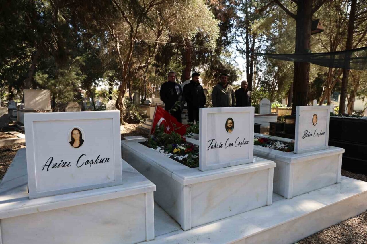 Kahramanmaraş merkezli depremde Kozan’da yakınlarından haber anlamayıp ikinci depremde kalp krizi geçirerek hayatını kaybeden Birsen Coşkun ve Adana’da yıkılan Alpargün Apartmanında hayatını kaybeden mühendis Bekir Coşkun, öğretmen eşi Azize Dağlı Coşkun ve oğulları ziraat mühendisi Tahsin Can Coşkun yakınları tarafından kabristanda dualarla anıldı.